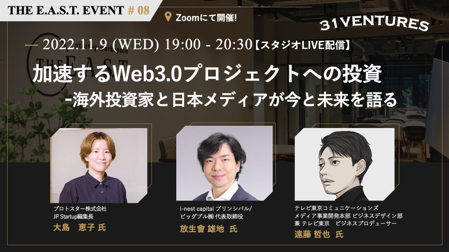 プロトスター株式会社(本社:東京都中央区、代表取締役社長:前川英麿、以下プロトスター)は、31VENTURESと共催で「加速するWeb3.0プロジェクトへの投資、海外投資家と日本メディアが今と未来を語る」(https://peatix.com/event/3395321/view)オンラインイベントを11月9日(水)に開催いたします。