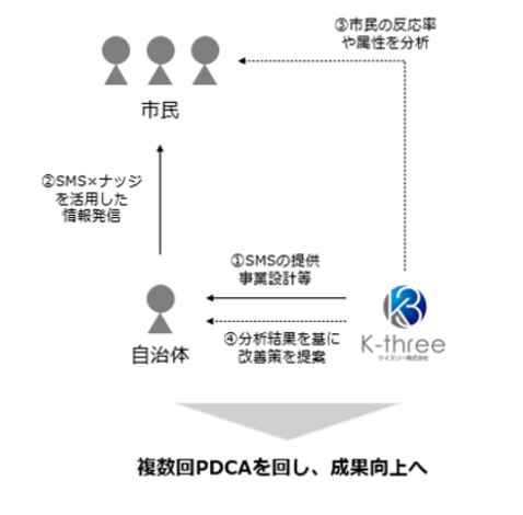 社会課題が山積みとなっている現代日本において、効率的・効果的な課題解決手法の開発と社会実装を同時に行い、より良い公共施策を実現するために生み出されたGovTechプロダクトです。行動科学、人工知能、SMS(ショートメッセージサービス)の3つを組み合わせることで、行政DXを推進し、市民の行動変容につながる公的通知を実現します。