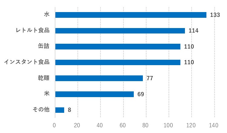 調査(*1)で防災備蓄を用意していると答えた方(n=144)に、どんなものを用意しているか聞いたところ、トップは水で、約9割の人が用意していると回答しました。水は飲用だけではなく、トイレや洗顔、歯磨きなど生活のさまざまな場面で必要となります。持ち運びに便利な500mlペットボトル、多用途に使える2Lペットボトル、10~20Lの大容量タンクなど、さまざまなサイズの飲料水を備蓄しておくと、いざというときにも安心です。また、生活用水として、水道水を入れたポリタンクを用意する、お風呂の水をいつも張っておくなどの備えも重要です。