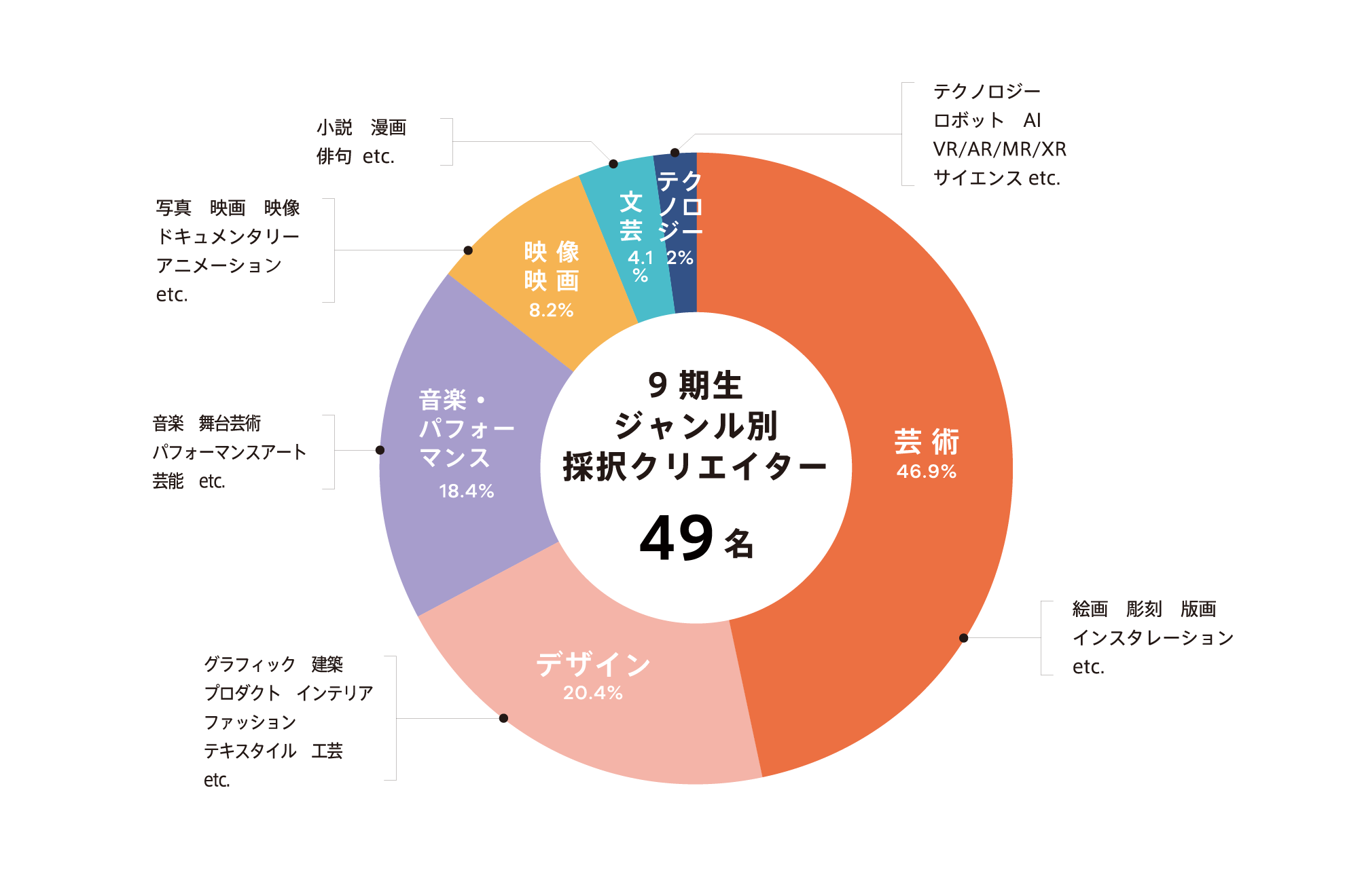 2025年は、様々なジャンルで創作に取り組む1,402名のエントリーの中から、クリエイター奨学金9期生《49名》が決定。奨学生には年額120万円の奨学金給付をはじめ、同世代のクリエイター同士の繋がりを創出する合宿などの年間カリキュラムを提供します。また、『KUMA EXHIBITION 2026』として成果発表展の機会を併せて提供し、次世代のクリエイターの育成と、若い才能が持つ無限の可能性を社会と繋げることを目指します。