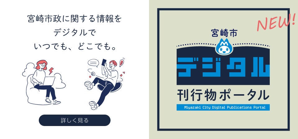 宮崎市の情報を、いつでも、どこでも、手軽にご覧いただけるよう、「宮崎市デジタル刊行物ポータル」をオープンしました!幅広いジャンルの刊行物をまとめた、より見やすく、探しやすいポータルサイトです。