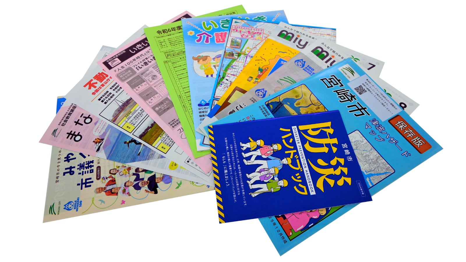 「宮崎市デジタル刊行物ポータル」では、市の広報紙をはじめ、くらしやイベント情報など、さまざまな刊行物をご覧いただけます。
