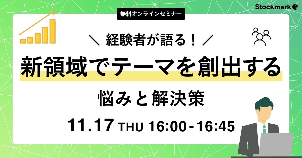 【11月17日(木) 無料セミナー】「経験者が語る! 新領域でテーマを創出する悩みと解決策」を開催(ストックマーク主催)