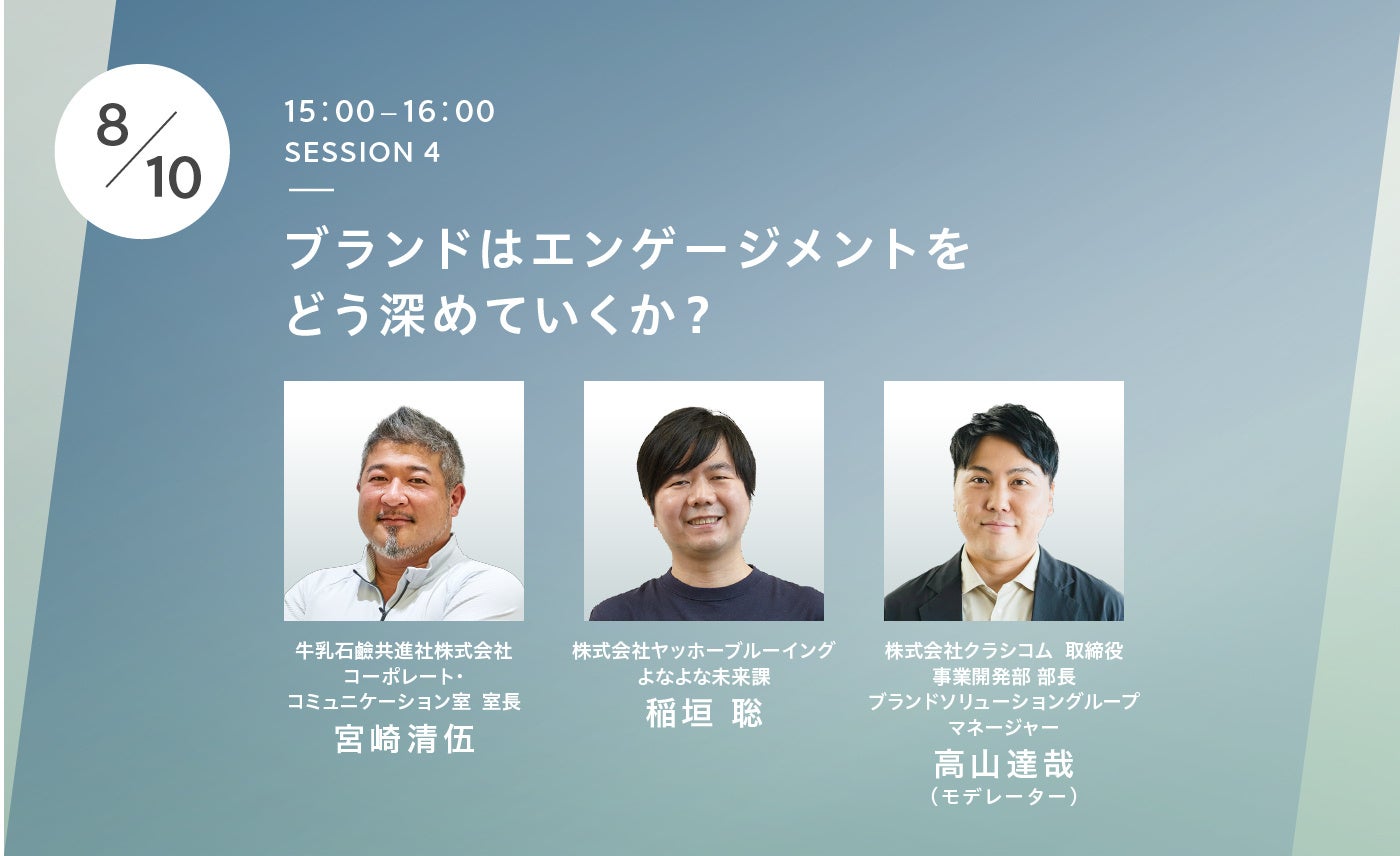 クラシコム代表取締役の青木、BRAND SOLUTIONを統括する高山など、登壇者11名による各1時間のトークセッションを4本、配信いたしました。