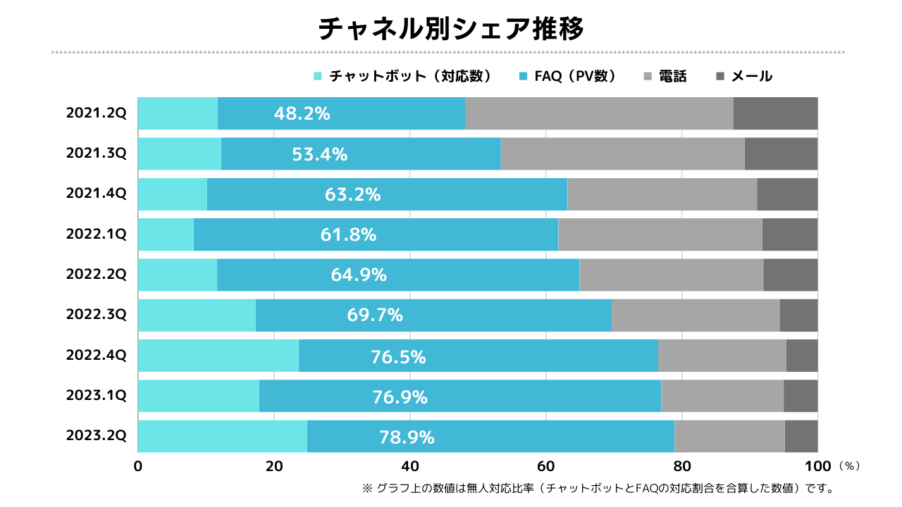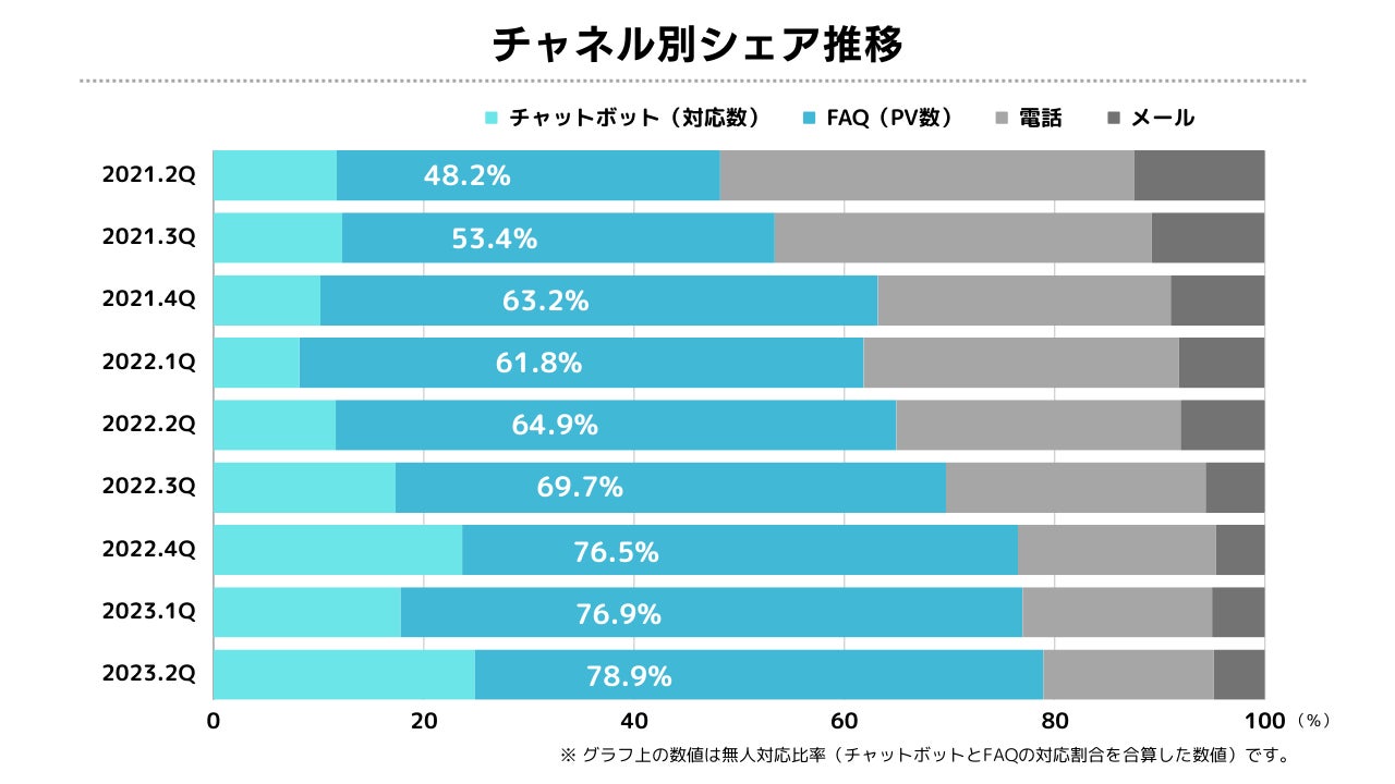 ※2023年7月~9月の総対応数に対する無人対応(FAQ・チャットボット)の対応比率を算出。2023年9月単月で最大81%の無人化対応を実現しております。