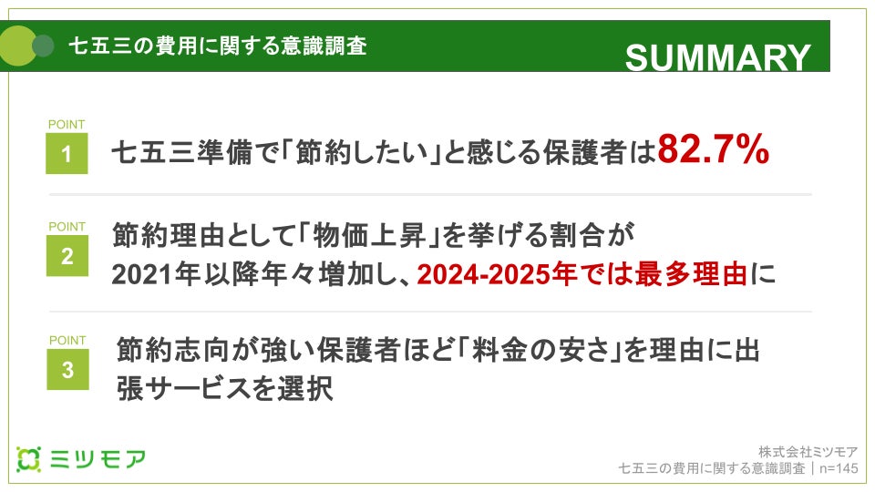 物価高で七五三も節約時代、83%の親が「費用抑えたい」。ミツモアが七五三出張サービスの利用者へ調査