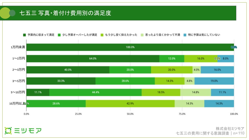 写真・着付け:1-2万円帯で76%が満足、10万円以上で42.2%が不満