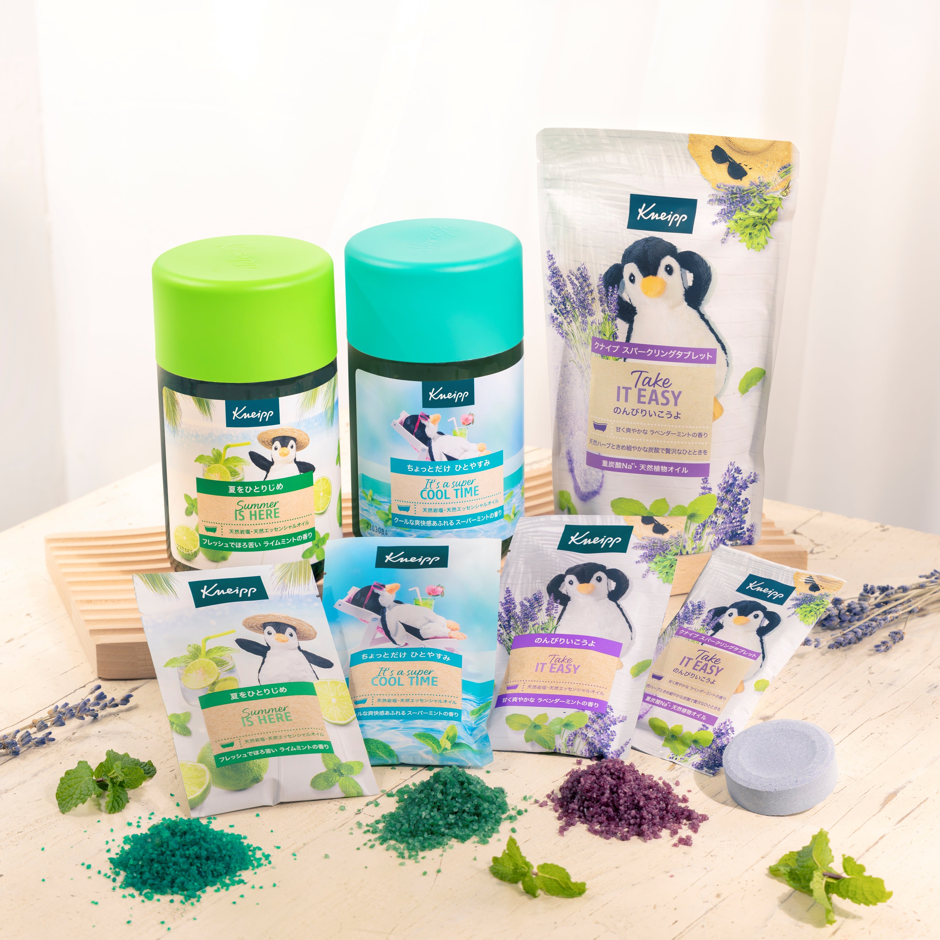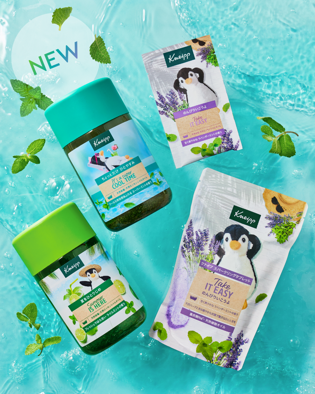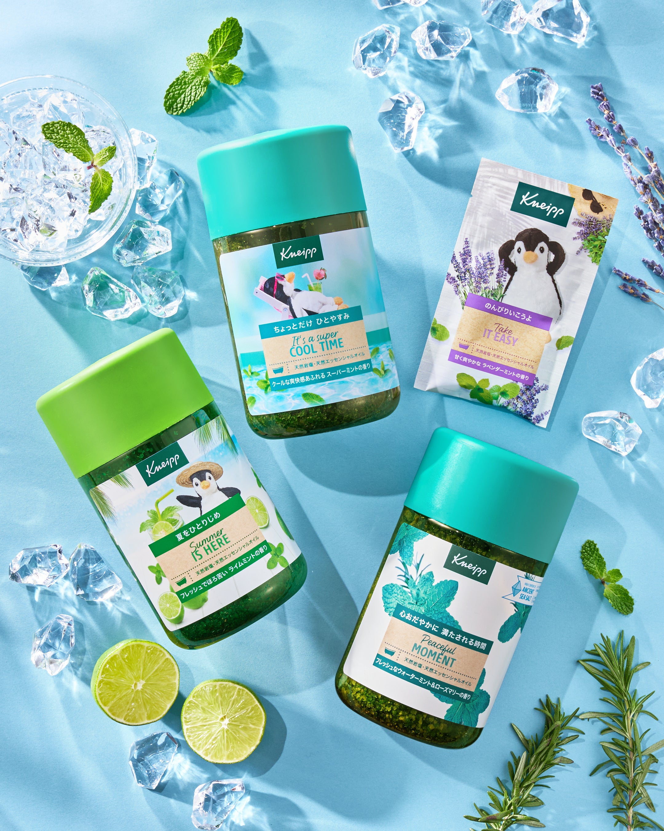 シリーズ一番人気の『クナイプ バスソルト スーパーミントの香り』は、4種の天然ミントとメントールを配合し、肌表面をすっと冷やすようなクール感をもたらします。また、ひんやり爽快感を感じながらも、きめの細かいふわふわの泡につつまれる『クナイプ 泡ボディウォッシュ スーパーミントの香り』も登場いたします。さらに、『クナイプ バスソルト ライムミントの香り』、『クナイプ バスソルト ラベンダーミントの香り』は、ミントのフレッシュさとラベンダーのリラックス感を兼ね備え、気分やシーンに合わせて選べる整うミントバスとしてお楽しみいただけます。