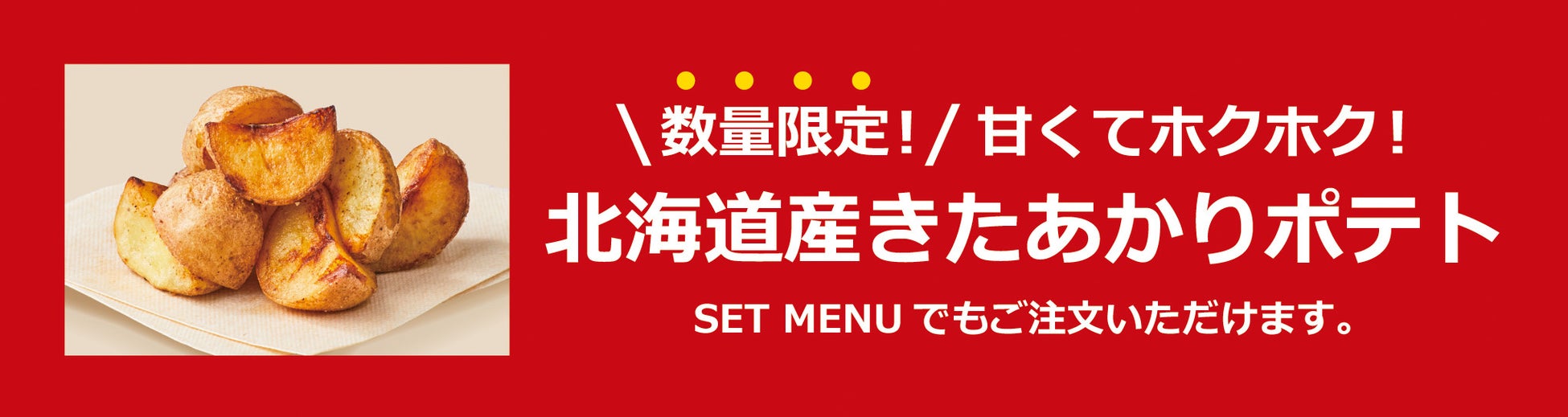 今回、ポテトファンの皆様にもっと喜んで頂きたい!との思いより、人気のじゃがいも品種「きたあかり」を使用した『北海道産きたあかりポテト』を数量限定にて発売いたします。