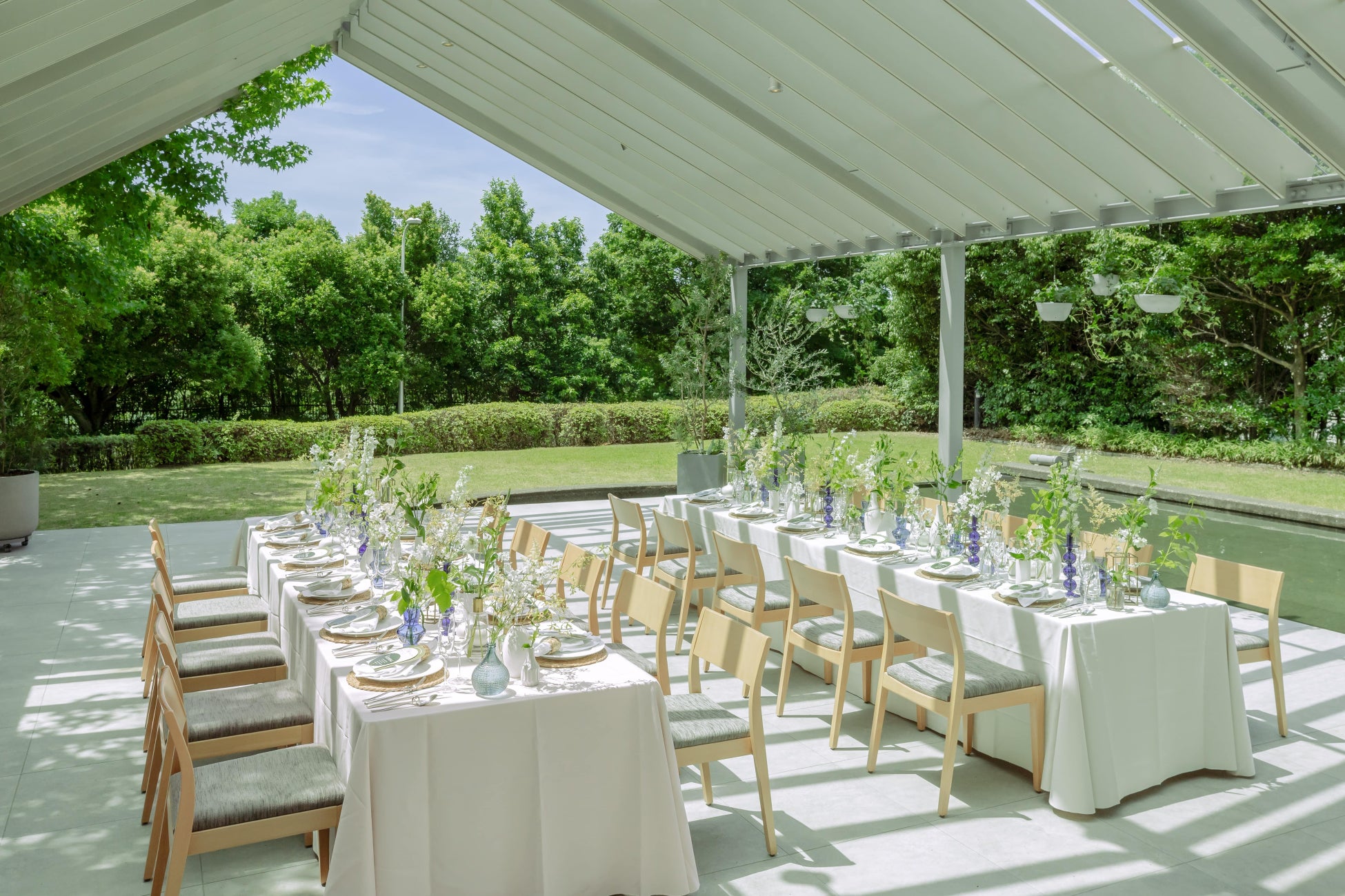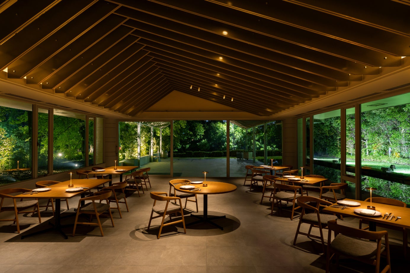 森のリゾートを訪れたようなロケーションにおいて、薪火と地元大阪の食材を中心としたリストランテとして、大切な記念日や食事会、イベント、ウェディングまで、シーンに合わせてご利用いただけます。
