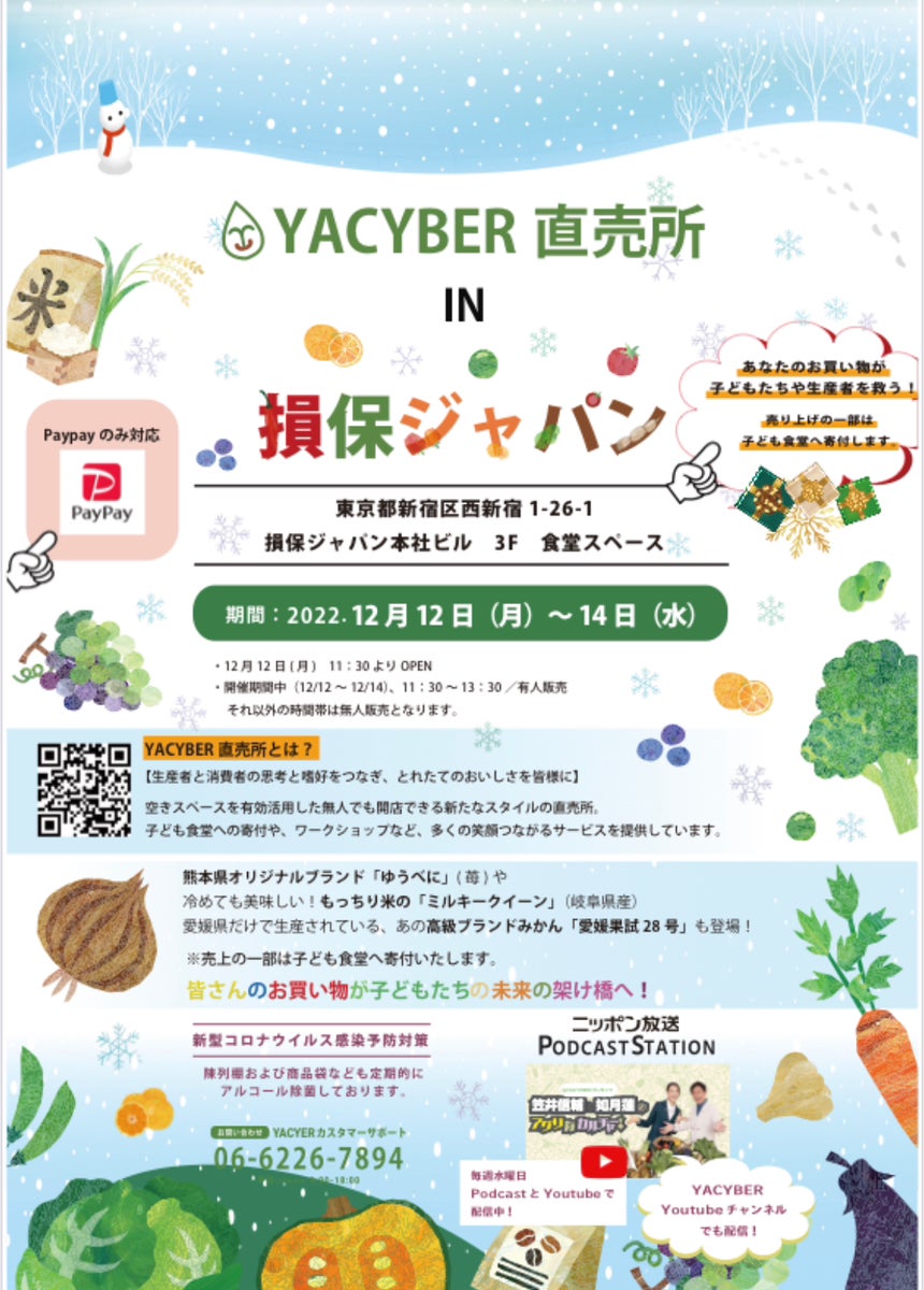 - 損害保険ジャパン株式会社 本社ビルにてYACYBER直売所の期間限定開催 -