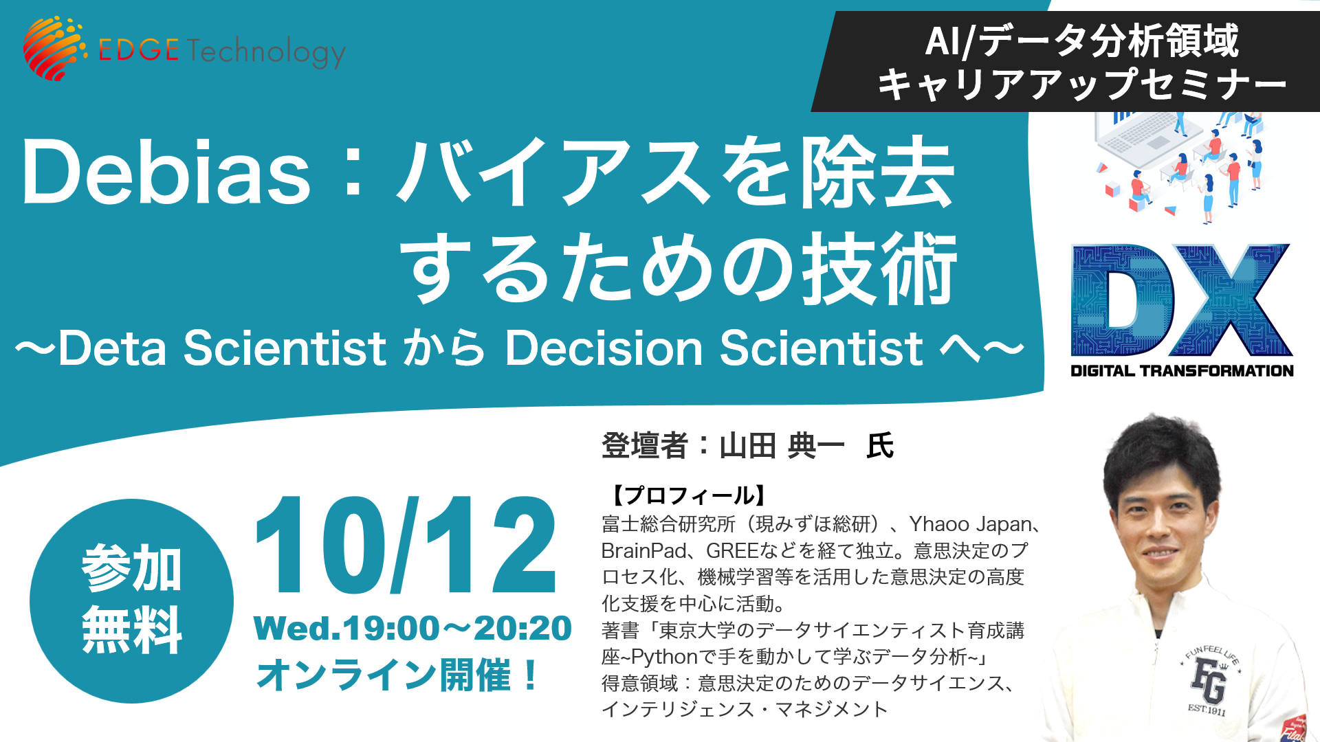 データ分析を意思決定に活かしたい方へ!エッジテクノロジー(AIジョブカレ)が「Data Scientist から Decision Scientist へ」セミナーを無料開催【10月12日19:00】