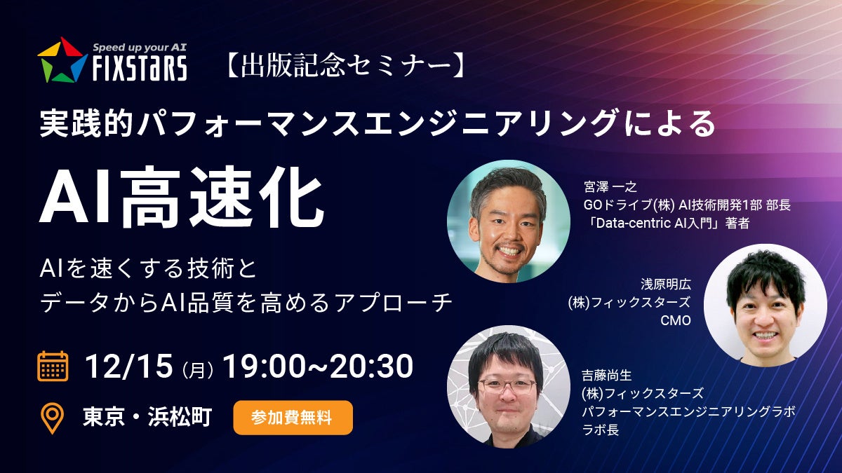 パフォーマンスエンジニアリング技術のリーディングカンパニーである株式会社フィックスターズ(東証プライム:3687、代表取締役社長 CEO:三木 聡)は、当社エンジニアが執筆した書籍『実践的パフォーマンスエンジニアリングによるAI高速化』が技術評論社より2025年12月22日(月)に発売予定となったことをお知らせします。本書は、当社の強みであるAI処理の高速化技術について、基礎から実践ノウハウまで網羅的に解説した一冊です。AI学習・推論に取り組むエンジニアが必ず知っておきたい、計算リソースに対して処理を最適化するための方法をご紹介します。