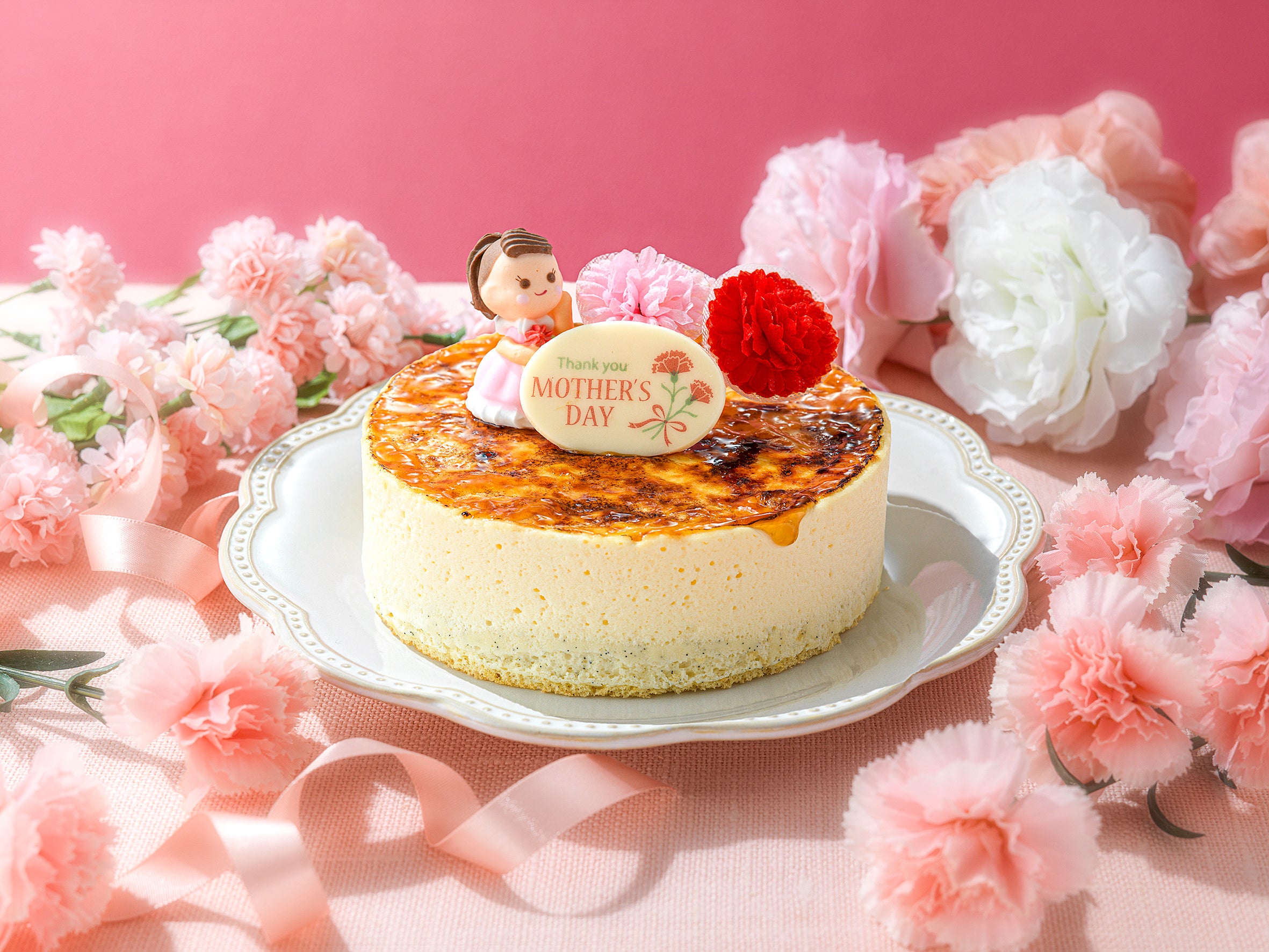 コンディトライ神戸の人気No.1チーズケーキ【神戸バニラフロマージュ】に母の日オーナメントを可愛く飾ればお母さんも思わず笑顔になる特別な母の日スイーツに。