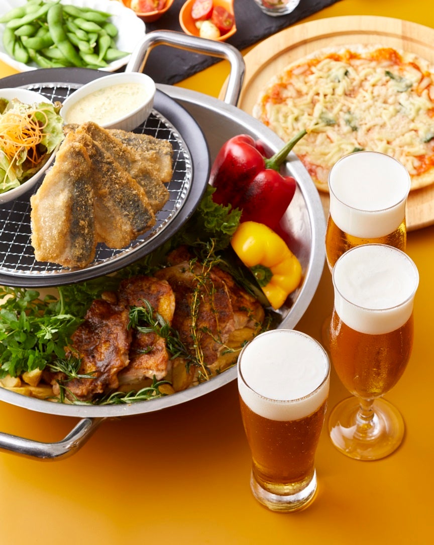 最近、福岡で確実に広まっている❝アジフライブーム❞。今回のビアプランでは、グリーンハウスで大好評の長崎松浦産のアジを使用した❝さくふわ❞のアジフライをご用意いたします。他にも、「チキンのスパイシーロースト 焼き野菜添え」や「PIZZAマルゲリータ」など、キンキンに冷えたビールと相性抜群のフードが勢ぞろい。