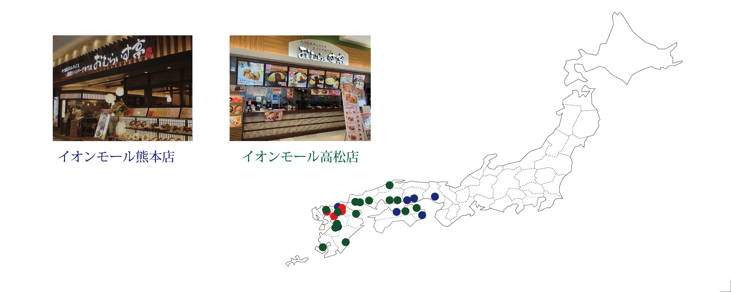 「おむらいす亭」は、福岡県福岡市で1999 年9 月に1 号店をオープンしました。 当時の担当者が、たまたま行った大阪の梅田にあるオムライス専門店で、ほぼ女性のお客様が20 名近く並んでいたことに衝撃を受け、九州福岡の地にもオムライス専門店を作ろうと思い立ったことがきっかけです。「おむらいす亭」はその当時 1,000 円近くしたオムライスを「懐かしの洋食屋さん」というコンセプトのもと、500 円前後のリーズナブルな価格帯で提供するお店として誕生しました。1 号店目から 25 年近く運営し、ショッピングセンター内に出店しております。「レストラン」「炭焼レストラン」「フードコート」と店舗の形態やメニュー内容を幅広く取り揃え、お客様のニーズにあわせた展開を行っております。