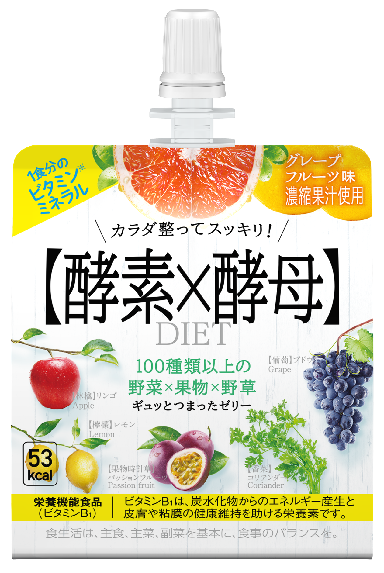 『イースト×エンザイム ダイエット〈ゼリー〉』は、野草・和漢食品100種類以上を組み合せ、乳酸菌、酵母菌、麹菌を使用し遠赤外線効果のあるかめでじっくり発酵&熟成して作られた「野草入り植物発酵エキス」に加え、1食分のビタミン、ミネラル(※1)も配合。おいしくカラダを整えダイエットをサポートしてくれます。