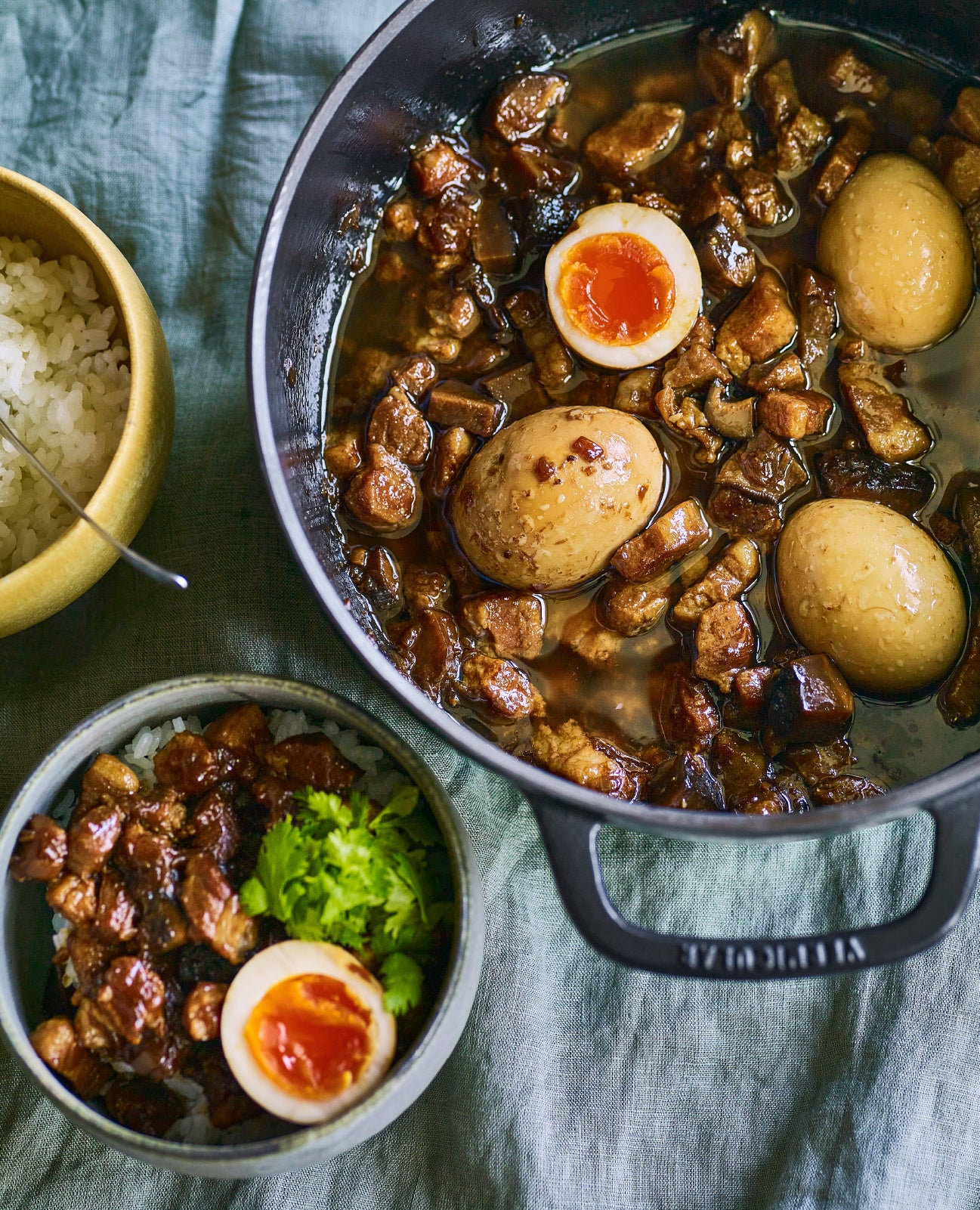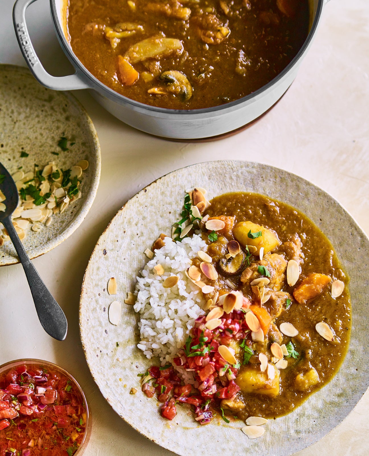 第一弾は、バーミキュラの抜群の密閉性が叶える、水を一滴も使わない野菜の旨みあふれる「完全無水カレー」。特製サルサソースのトッピングでご家庭とは一味違ったアレンジをお楽しみください。第二弾は、とろとろの豚ばら肉と甘辛の煮汁、スパイシーな五香粉の香りでご飯が進む「魯肉飯(ルーローハン)」。第三弾は、驚きのしっとり感が自慢の鶏肉に特製ラー油をかけた「極上よだれ鶏」。〆には中華麺を入れて「鶏だし麻辣麺」をお楽しみください。価格はどのメニューも1,000円(税込)。