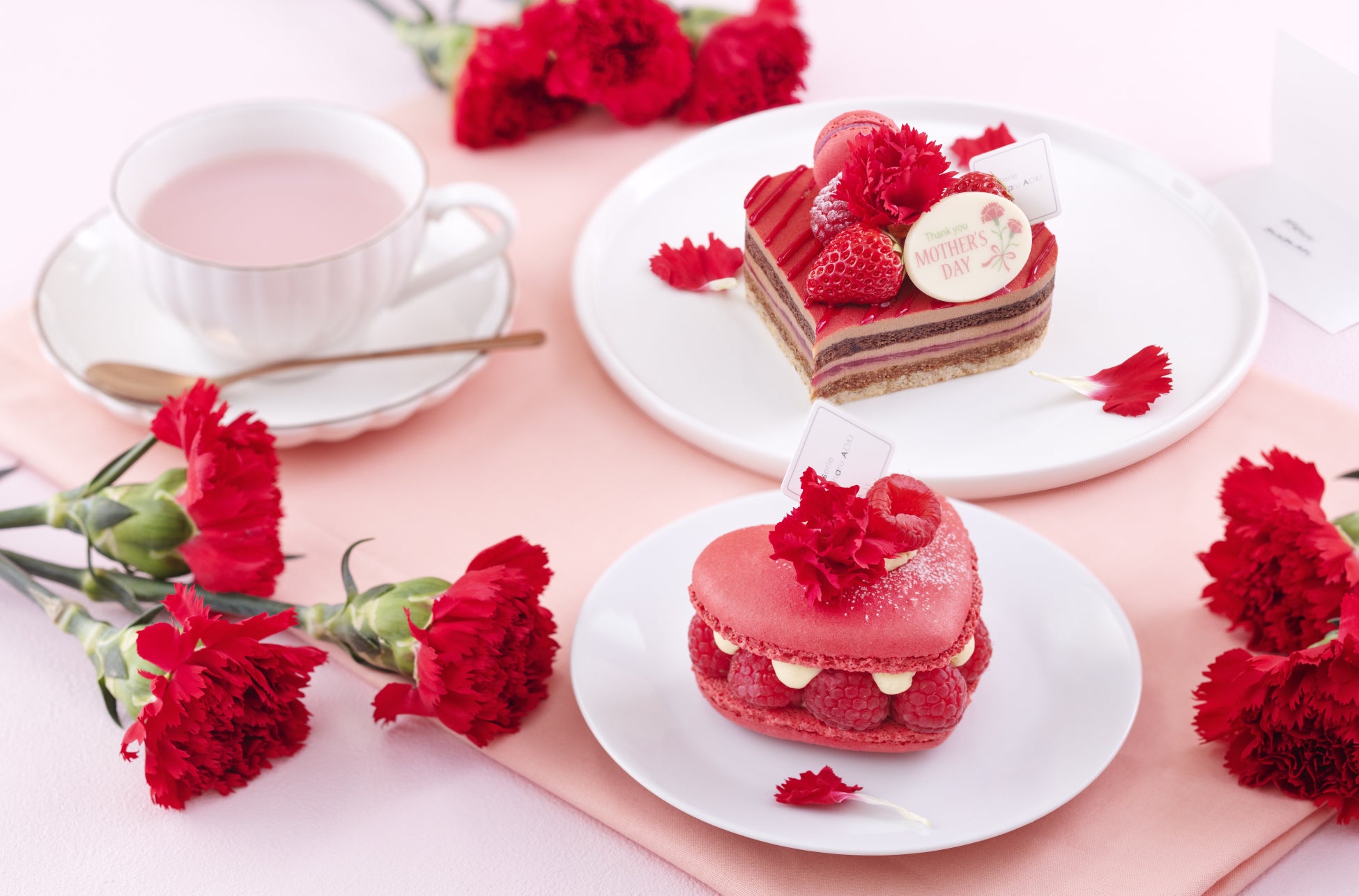 5月9日(金)~5月11日(日)の3日間限定で、母の日限定ケーキを販売いたします。濃厚なミルクチョコレートクリームとフランボワーズのジュレを合わせた「センシュエル クール」と、ハート型に焼き上げたマカロン生地がキュートな「サンフォニー クール」。事前予約の受付を順次承ります。また、母の日仕様パッケージの焼き菓子「コフレ ルージュ プティ」はオンラインショッピングサイトでもご購入いただけます。大好きなお母さんに「ありがとう」の気持ちを込めて贈るプレゼントにいかがでしょうか。