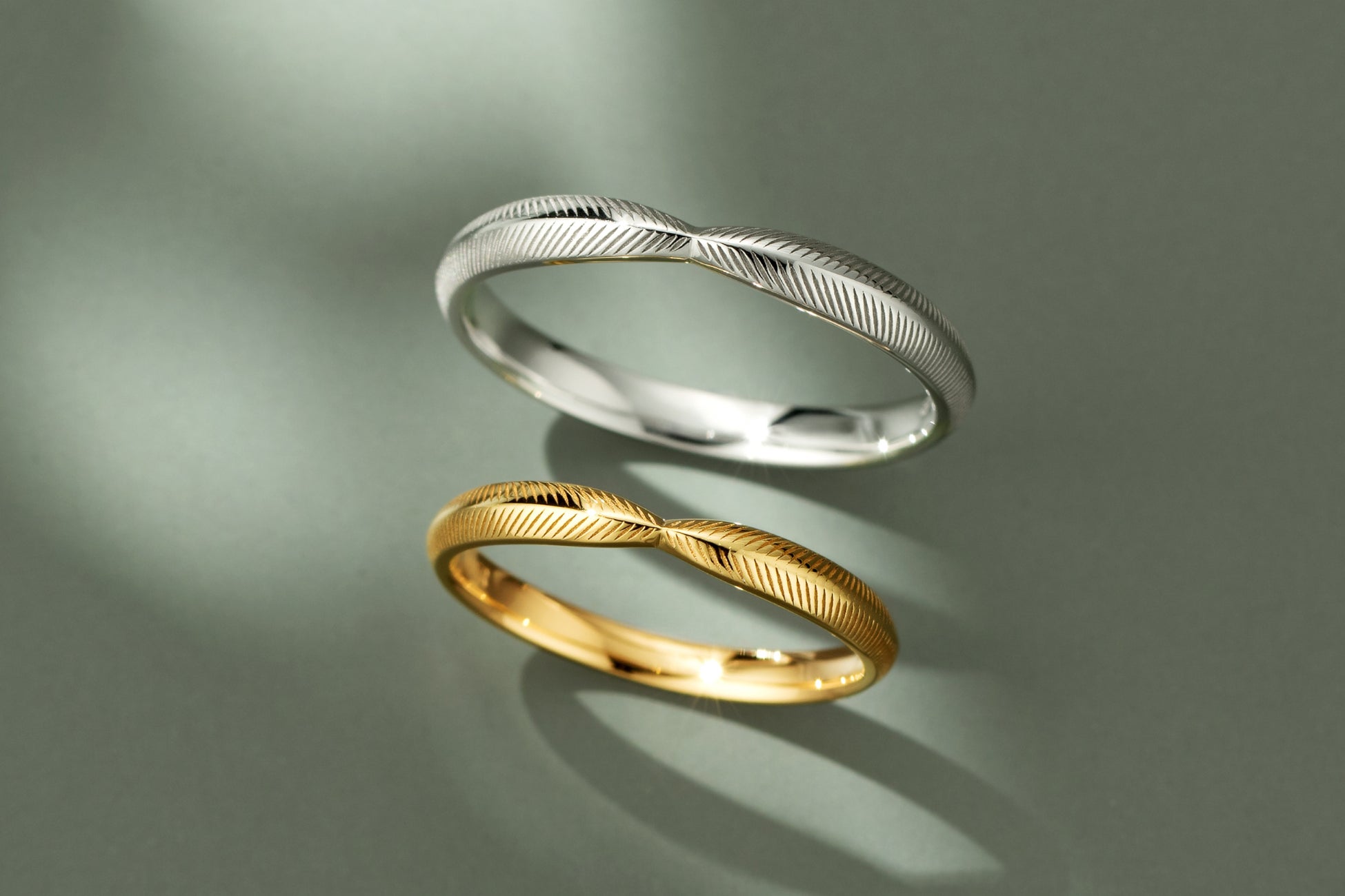 葉脈を思わせるテクスチャーは、あたたかみがありながら端正な印象となるように、職人と長い時間をかけて生み出した独自のもの。上品で繊細な輝きで、お二人の指を彩ります。「シンプルな中にも個性を感じさせたい」そんな方にもおすすめです。