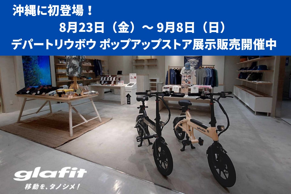 電動パーソナルモビリティの開発、製造、販売までワンストップで手掛けるglafit株式会社(読み:グラフィット、本社:和歌山県和歌山市、代表取締役社長CEO:鳴海 禎造、以下glafit)は、株式会社琉球モビリティ(本社:沖縄県中頭郡北谷町、代表:濱砂 裕治)、一般社団法人オール・ニッポン・レノベーション、(本社:沖縄県中頭郡北谷町、代表:富樫泰良)、株式会社BORDER(本社:沖縄県那覇市、代表:金城勝志)と合同で、沖縄のデパートリウボウ(住所:沖縄県那覇市)で行われるウェルビーイングと地域づくりをテーマにしたポップアップストアにて 電動サイクル NFR-01Proの展示販売会を開催しています。