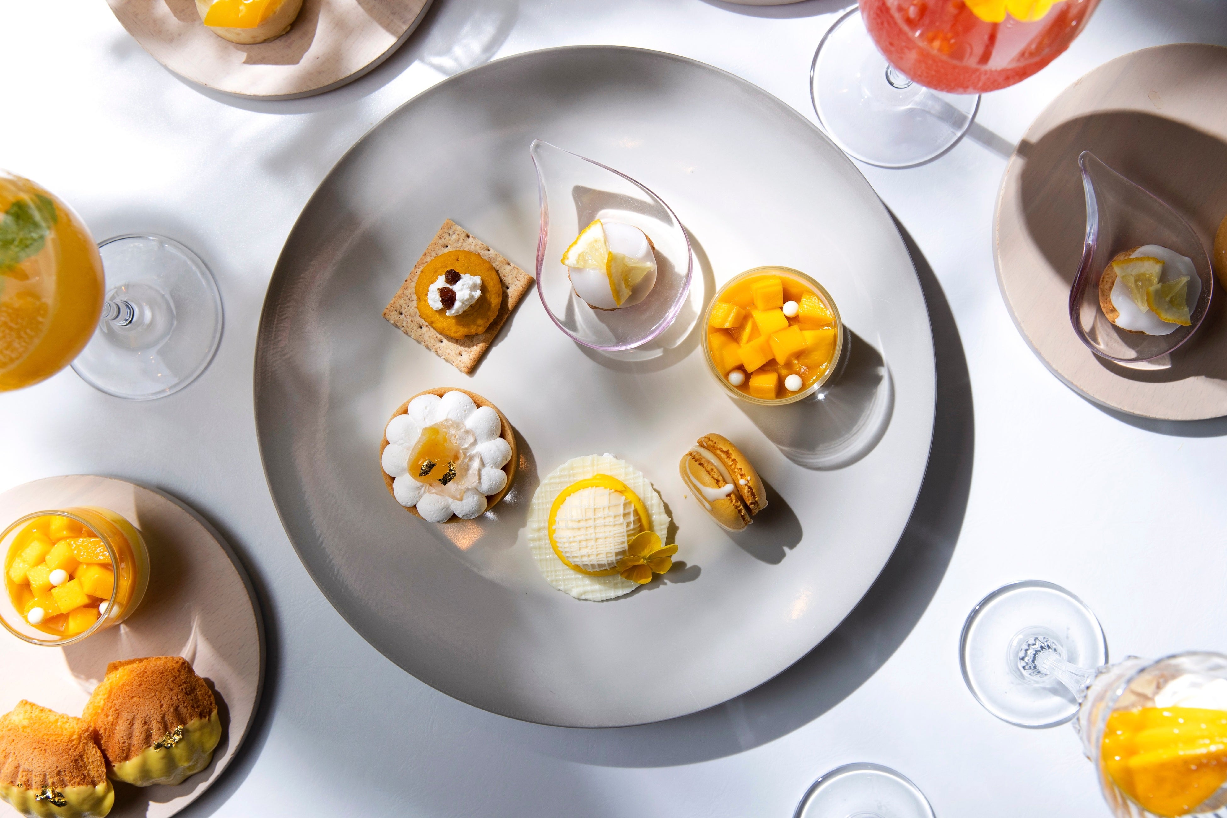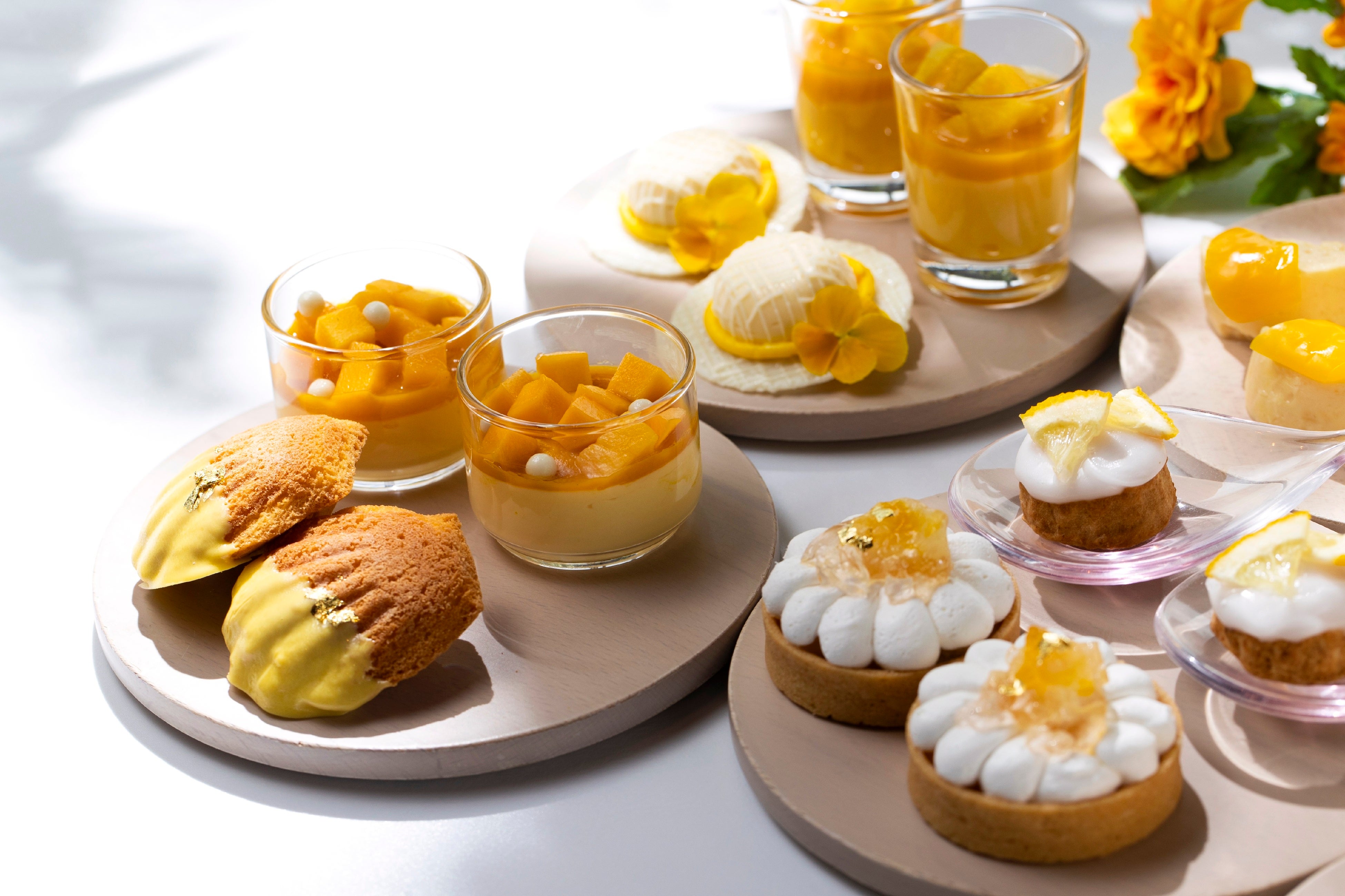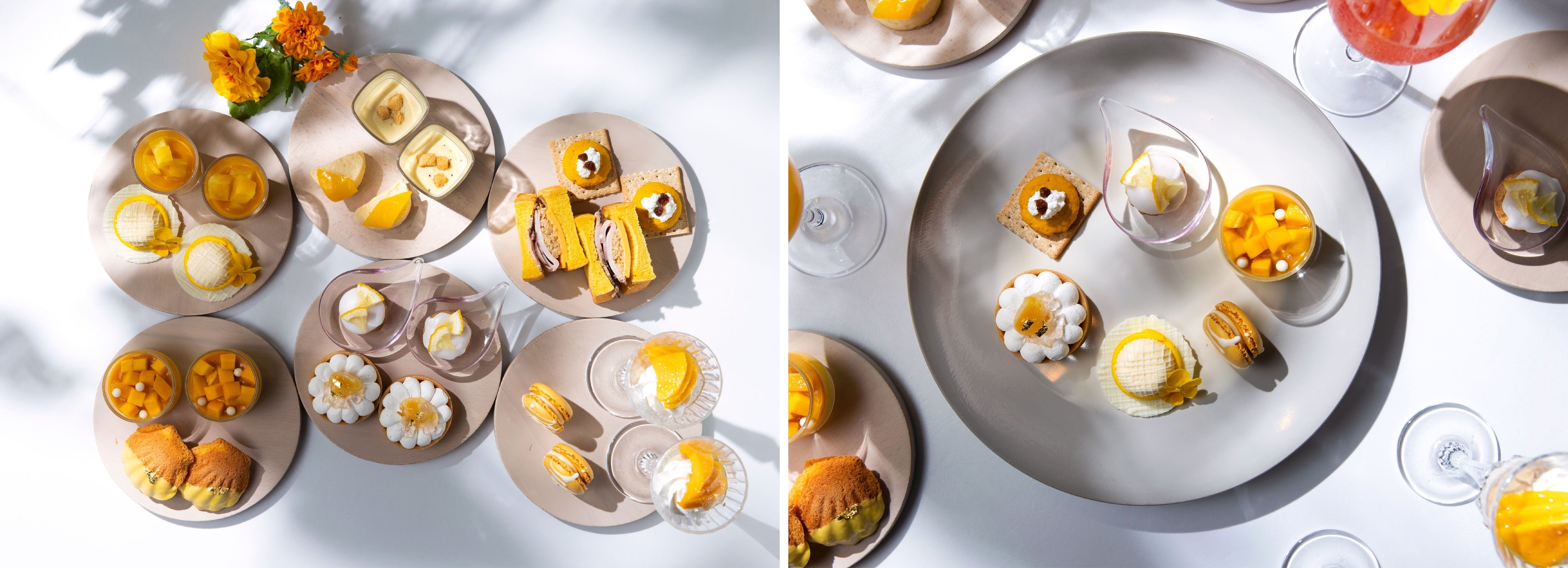2段目 マンゴーとカカオのイエローパフェ/レモンのイエローマカロン