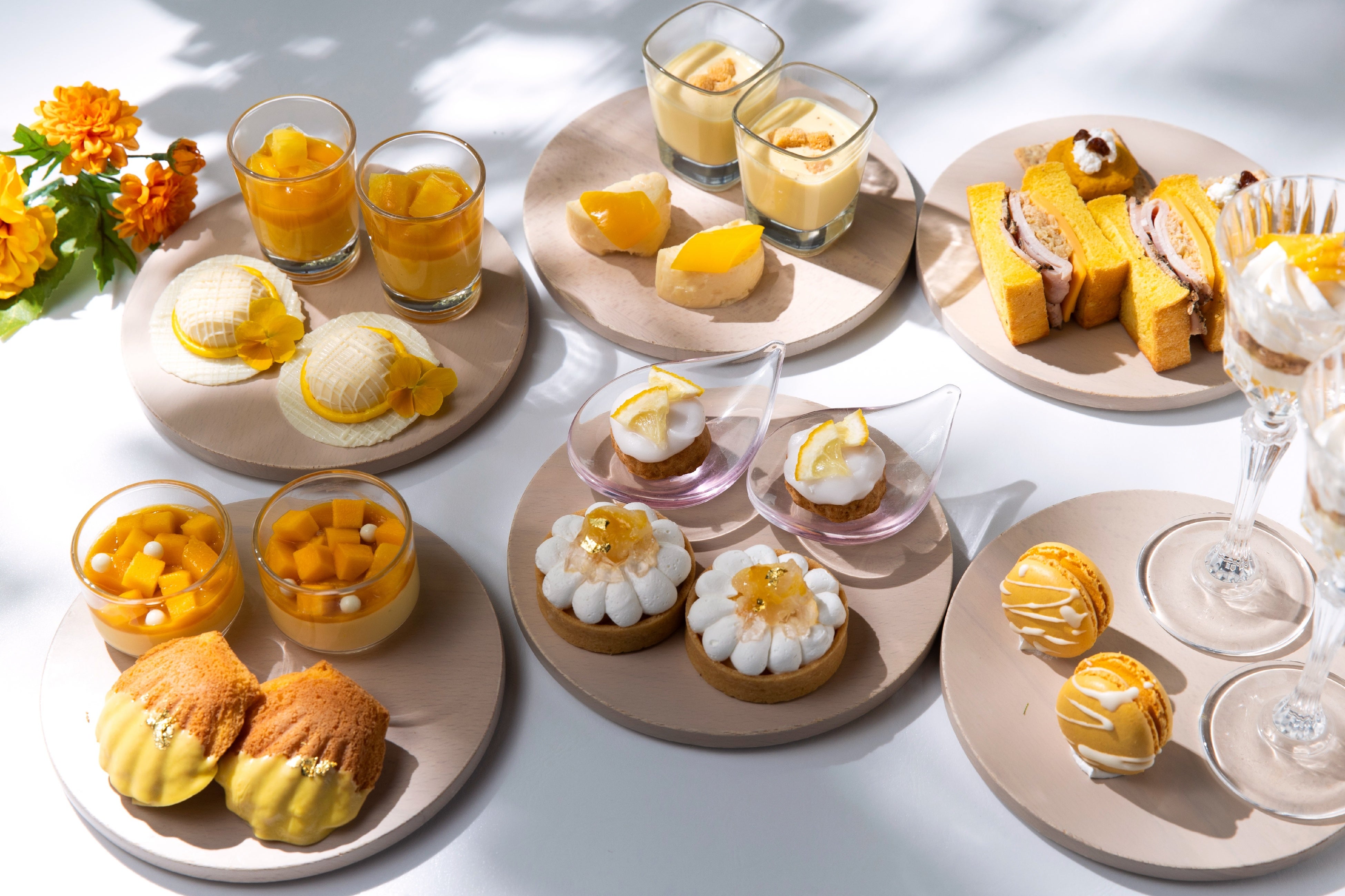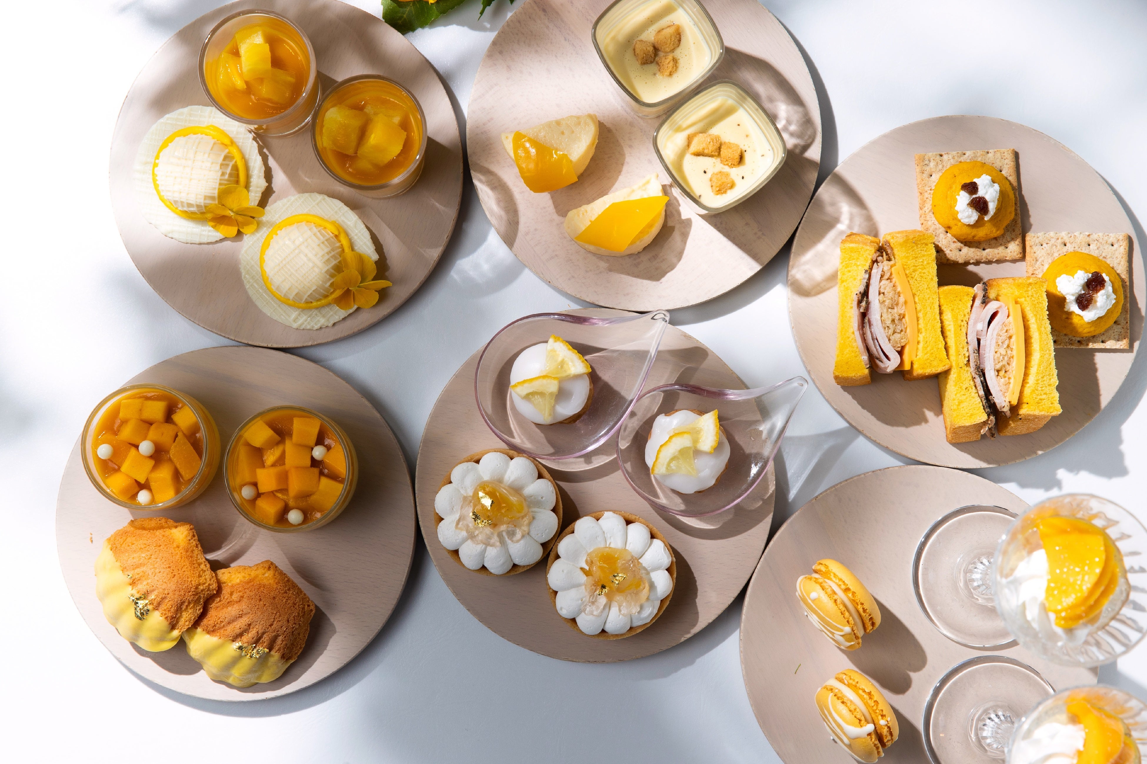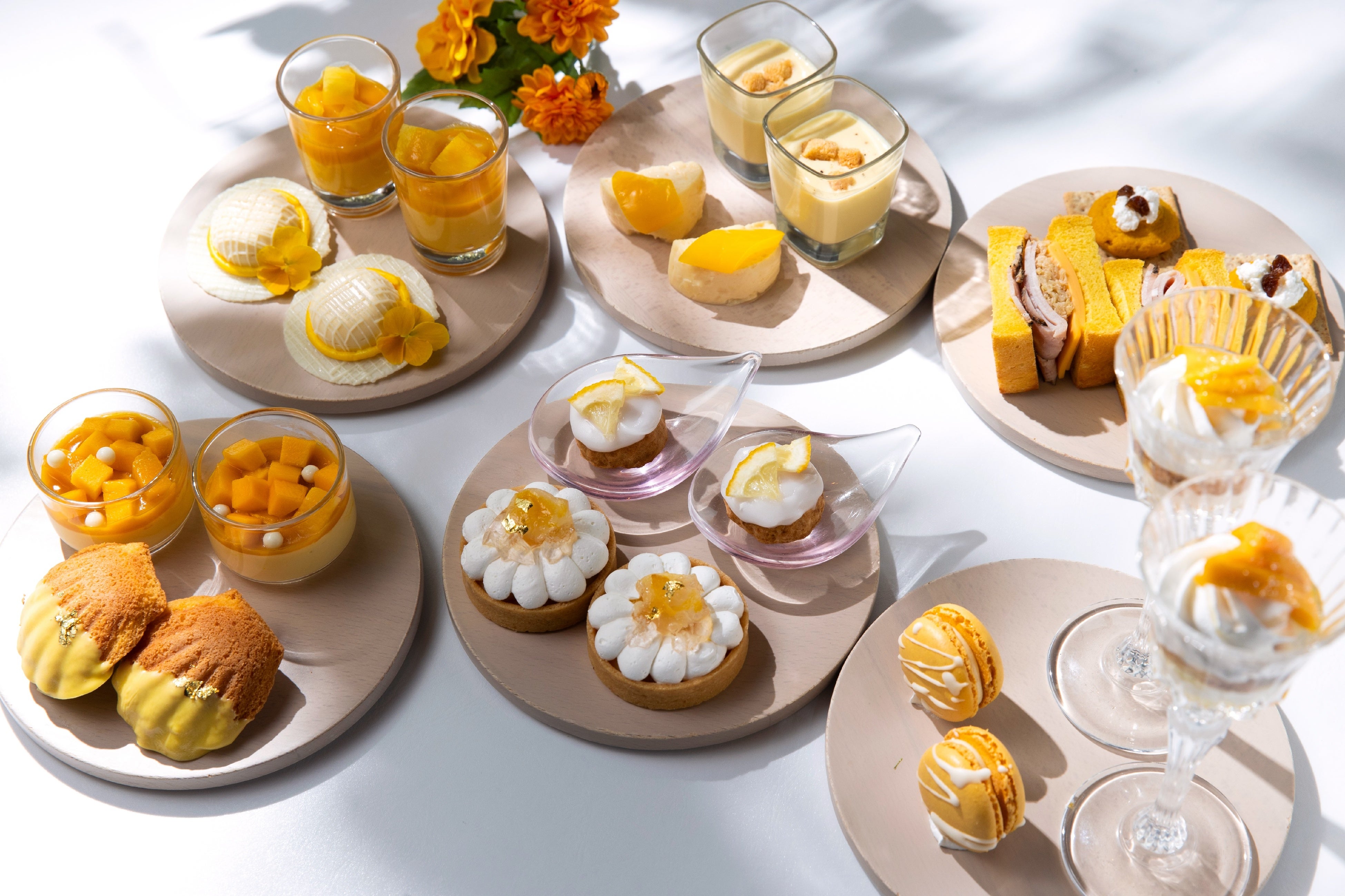 2段目 マンゴーとカカオのイエローパフェ/レモンのイエローマカロン