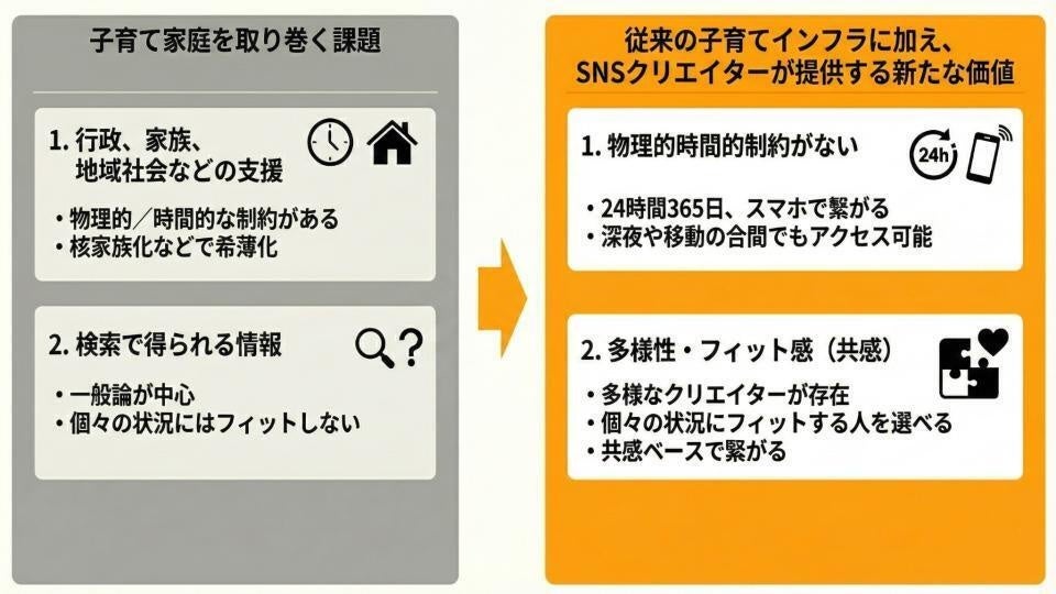 〜時間と場所を超えて、リアルの支援と手を取り合う。SNSクリエイターを子育ての「第3のパートナー」に。〜