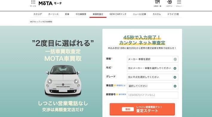 <サービス紹介:MOTAが運営する「MOTA車買取査定」>