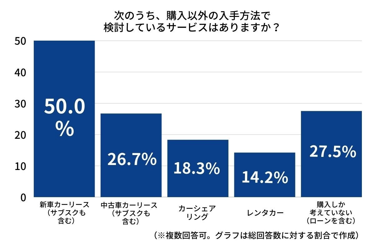 ◆購入以外に「新車カーリース」を検討している人が50.0%も
