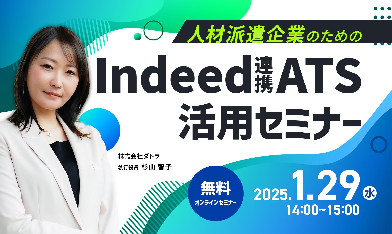 1月29日(水)14:00~15:00「人材派遣企業のためのIndeed連携ATS活用セミナー」を開催