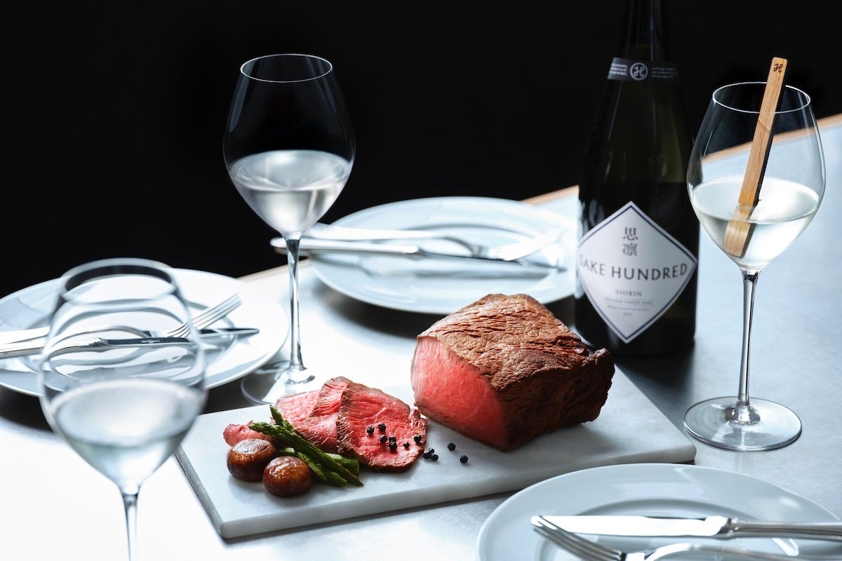 「深林の香り木」を浸け、さらに樽のニュアンスを強めることで、より複雑な味わいや主張の強い食材など、合わせられる料理の幅が広がります。「深林の香り木」に浸けて、樽の香りが増幅した『思凛』には、程よくサシの入った和牛に、塩漬けの生胡椒のアクセントがベストマッチ。『思凛』の端正な旨味とスモーキーなニュアンスが、塩漬け生胡椒の塩味・辛味によってそれぞれ増幅・同調を繰り返し、立体的な味わいをつくりあげます。そこに牛肉の甘く香ばしい脂が交わり、甘味・旨味が豊かに引き立ってゆきます。フィニッシュにかけては、『思凛』本来の酸味と「深林の香り木」によってもたらされた上質な渋みが、複雑な味わいをまとめ、優しい余韻を生み出します。