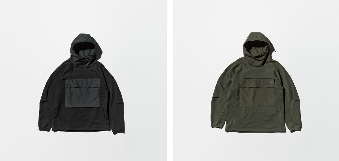 今回発売するコラボアイテムでは、ALMOSTBLACKデザイナー中嶋峻太氏によって、ベルクロ・ドローコードでシルエットに変化を付けられるジャケットや、収納力の高いビッグポケット付きのトップスなど、前回のコラボレーションよりもさらにファッション性・機能性の両軸が高まったアイテムが揃いました。今シーズンからは新たに、フリース素材をベースにしたジャケット・パンツや、高い防風性を兼ね備えたグローブもラインナップ。どれも厳しい寒さを乗り切るのにぴったりのアイテムです。また、先シーズンに引き続きキャラクターデザインにはアーティストの加藤泉氏を起用し、加藤氏もこよなく愛する釣りからのインスピレーションを受け、釣りの仕掛けに見られる「トリプルフック」を取り入れたデザインがアイテムに刺繍されます。フィッシングの機能とファッション・アートが融合された唯一無二のアイテムをお楽しみください。