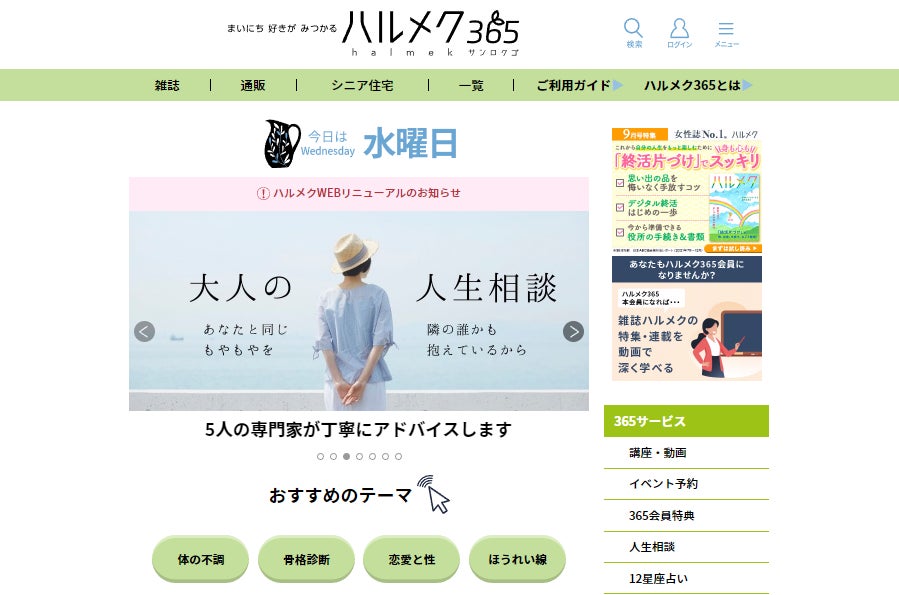 女性誌販売部数No.1※『ハルメク』から新サービス登場! “観る・聴く・学ぶ・つながる” すべてが揃う シニア女性向けコンテンツ&アクションプラットフォーム 『ハルメク365』を提供開始