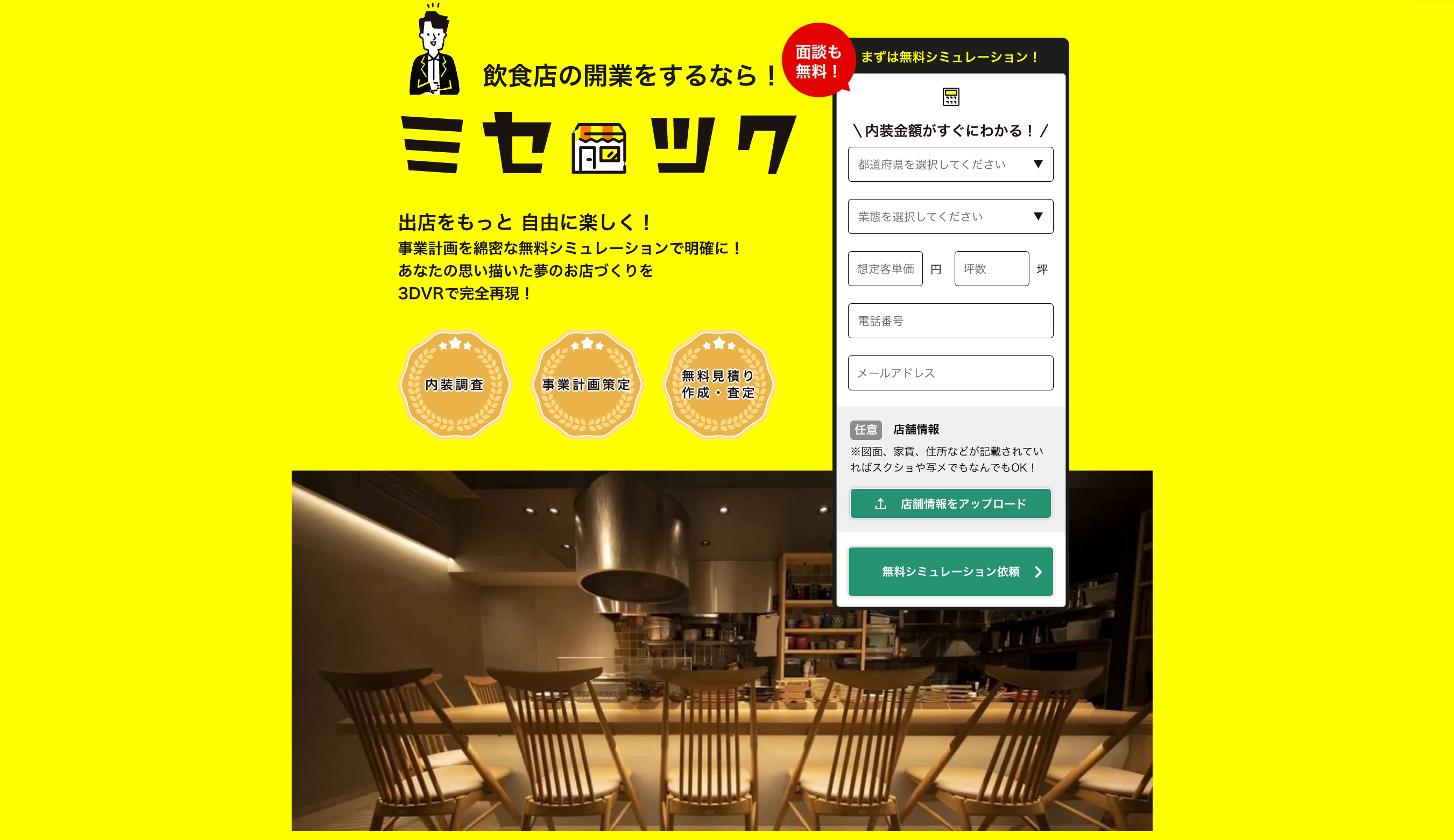 「ミセツク」は同領域に精通した起業家が選定のコンサルティングから内装事業者のマッチングまで、一気通貫で飲食事業者のパートナーとしてその課題に対してソリューションを起こすことが出来る革新的サービスとなっています。