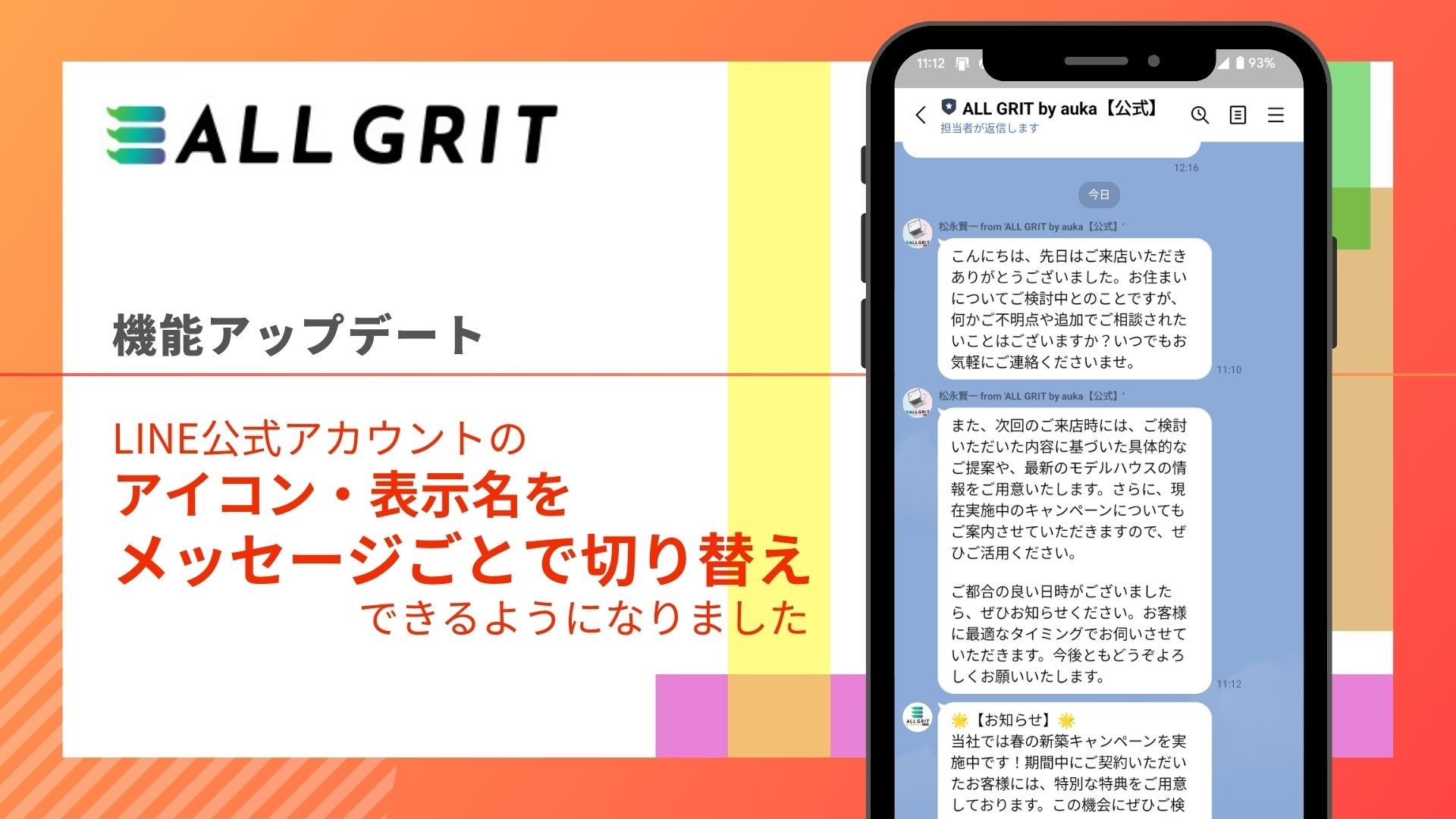 【新機能リリース】LINE公式アカウントのアイコン・表示名をメッセージごとで切り替え可能に|LINEを活用した住宅・不動産業界向けMAツール(マーケティングオートメーションツール)《ALL GRIT》