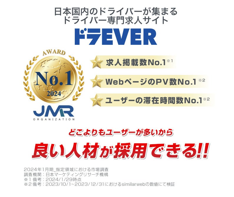 ドライバー求人サイト「ドラEVER」、2024年『求人掲載数No.1』を獲得!