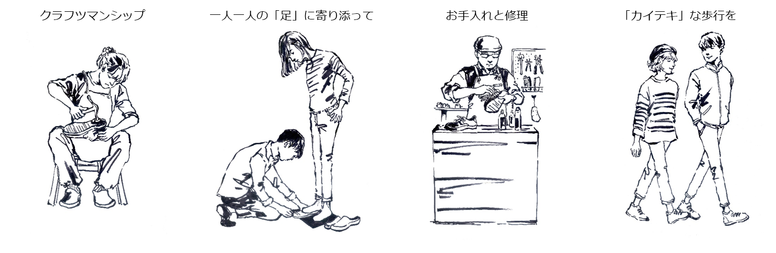 フットウェアの販売だけにとどまらず、専門知識とスキルを持った「シューソムリエ」が、フィッティングや日々のフットウェアのお手入れ、お客様にぴったりなフットウェア試着体験のお手伝いなど、気軽にお応え