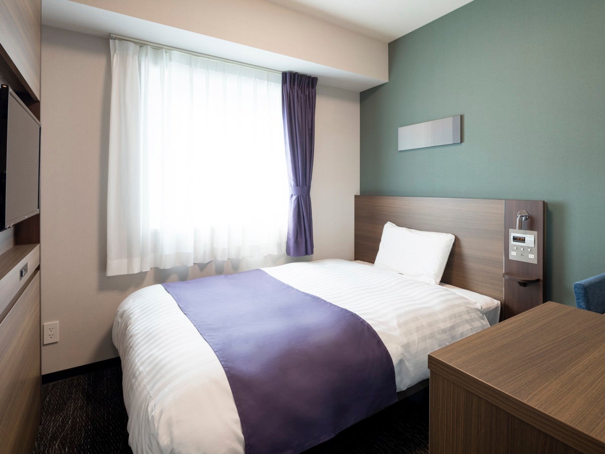 ホテル1階のラウンジスペースでは、ビュッフェスタイルの朝食を毎日無料で提供。14時から24時までは、挽きたてのコーヒーやレモンフレーバーのリフレッシュメントウォーターが飲み放題で利用できます。明るく清潔感のある客室は、15~19平米の広さで、スーツケースを置いても余裕があります。書類やパソコンを広げることができるデスクは、「リモートワークに便利」と好評をいただいています。また、館内には長期滞在にうれしいコインランドリーも完備しています。