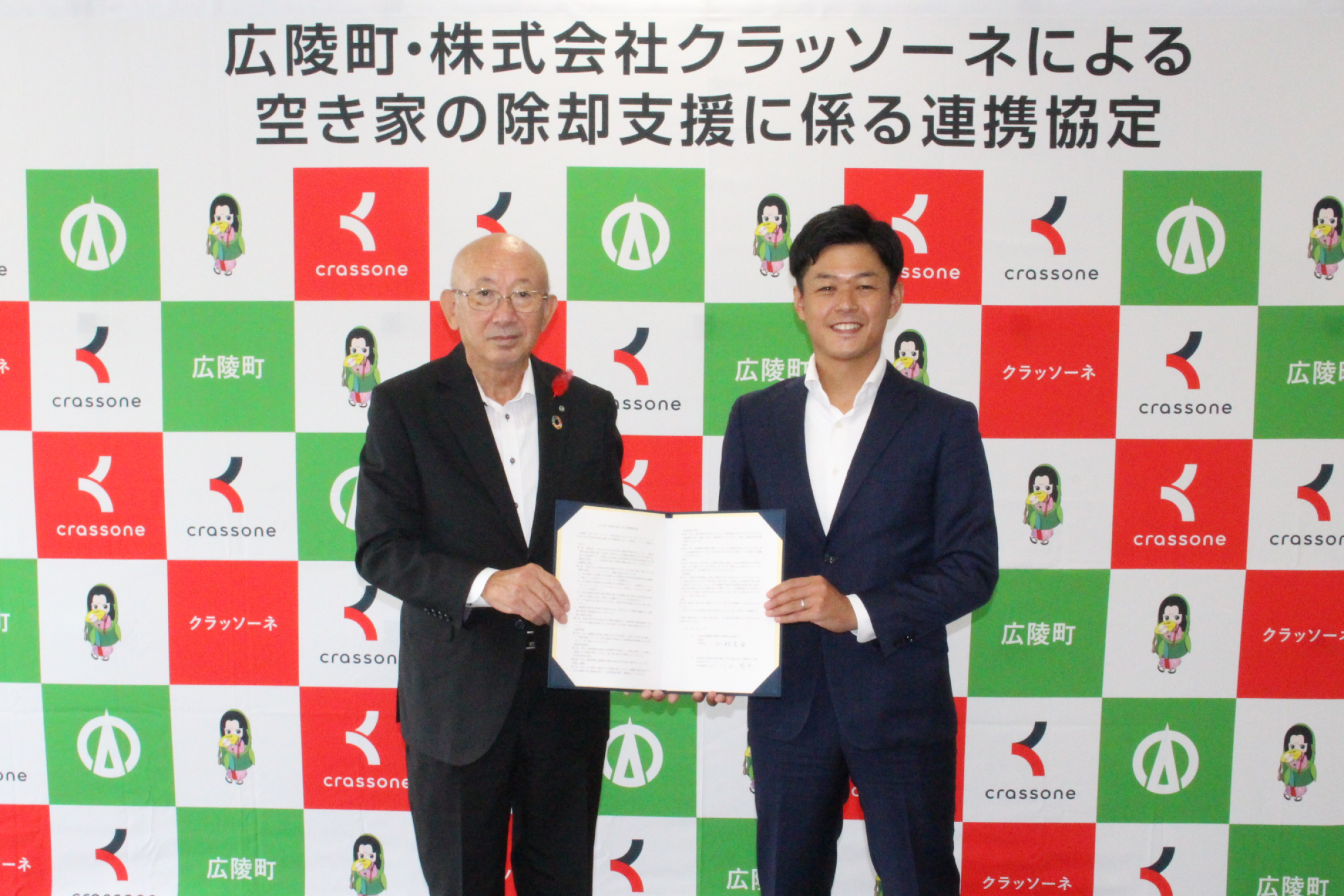 解体工事の一括見積もりWebサービス「クラッソーネ」を運営する株式会社クラッソーネ(愛知県名古屋市、代表取締役:川口哲平、以下「当社」)は、奈良県広陵町(以下、「広陵町」)と空き家の除却(解体)支援に係る連携協定を締結いたしました。昨今、全国的にも社会課題となっている空き家問題への対策として、広陵町内の空き家の適正な管理を推進し、安心安全なまちづくりの実現を目指します。