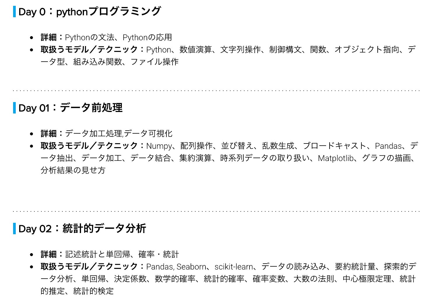 本講座では、Pythonの基礎から、各種ライブラリの使い方を習得した後に、統計的解析・機械学習・ビッグデータ解析などのデータ分析に関する一通りの技術を身につけ、データサイエンティストとして各種の実問題を解決できるようになることを目指します。