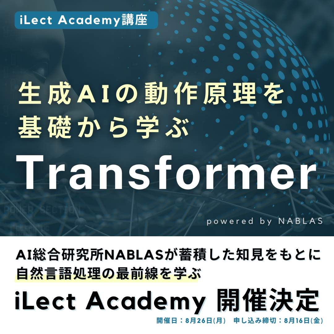 ▼LLMを本格的に学びたい方へ向けた【Transformer iLect Academy】お申し込み受付中