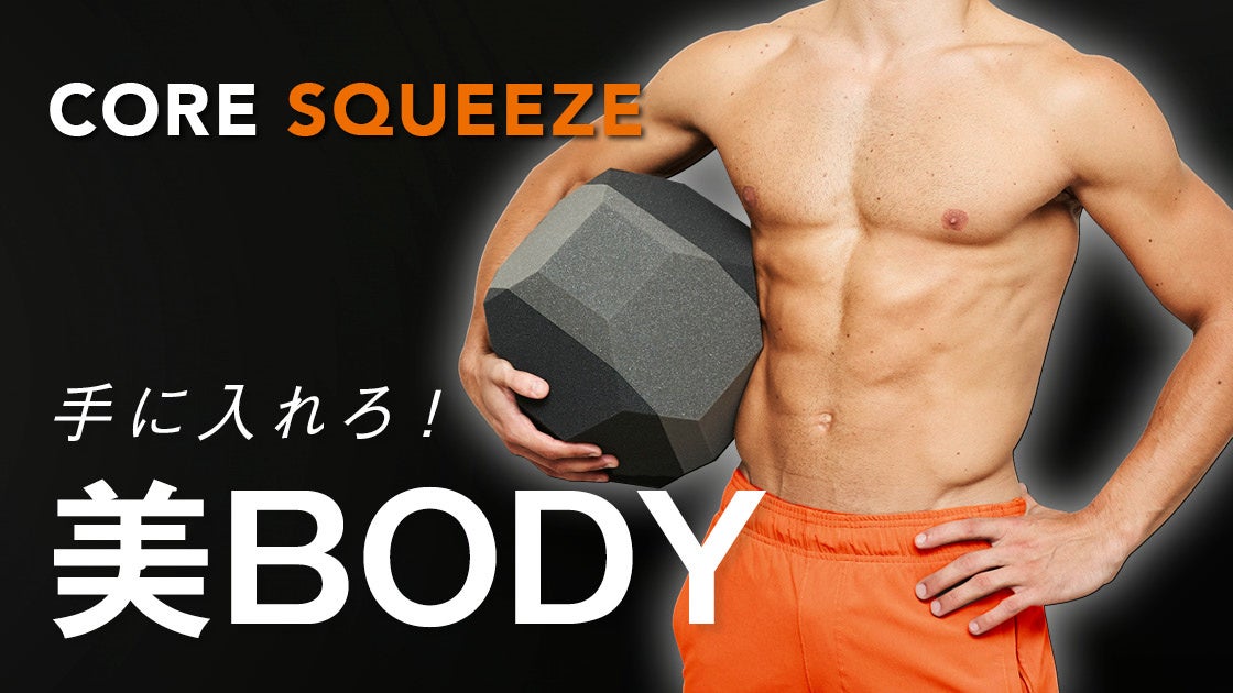 1日5分でTシャツが似合うカラダへ。業界初の押して潰して使う体幹トレーニングギア「コアスクイーズ」