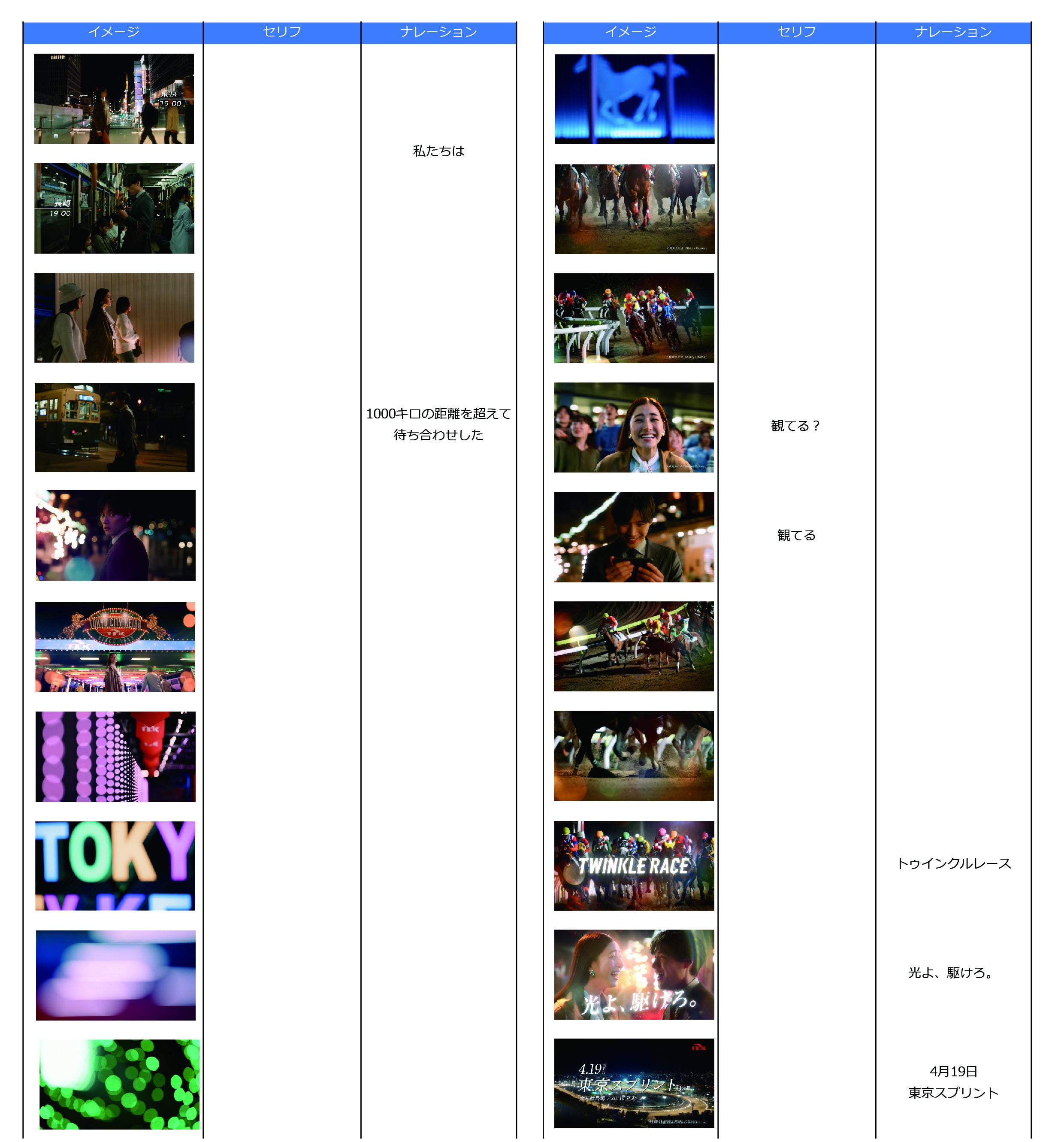 「TCK2023光よ、駆けろ。東京スプリント篇」 ストーリーボード