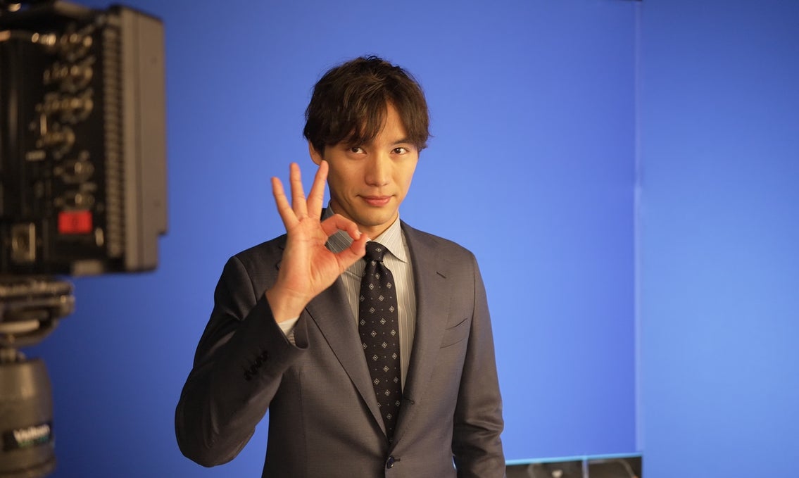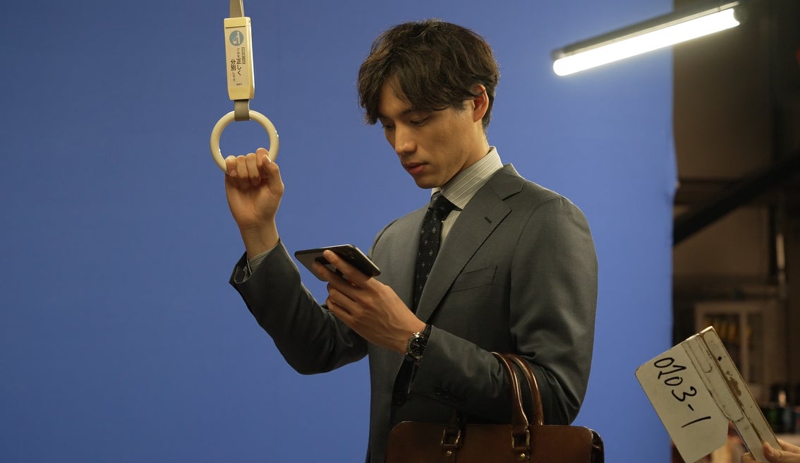 スーツを着たサラリーマンの出で立ちでスタジオ入りした福士さん。レースをスマートフォンで観戦しながら、電車に揺られ、家路を急ぐシーンの撮影。「手元のスマートフォンで観戦しつつ、車窓も見て、急ぐ感じを出してください!」と、次々と飛ぶ監督からの細かい指示を的確にこなす福士さん。監督から、「レースが楽しみ!という楽しみ感を前面に演技をお願いします」という要望が来ると、指示通り満面の笑みで撮影に臨みましたが、カット後に監督から、「電車内で他のお客さんもいるので、もう少し笑顔は抑えめで…(笑)」という指示が!すると福士さんも、「そりゃそうだ!(笑)」と、少し恥ずかしそうにはにかむ場面も。満場一致でOKが出て、撮影を終えました。
