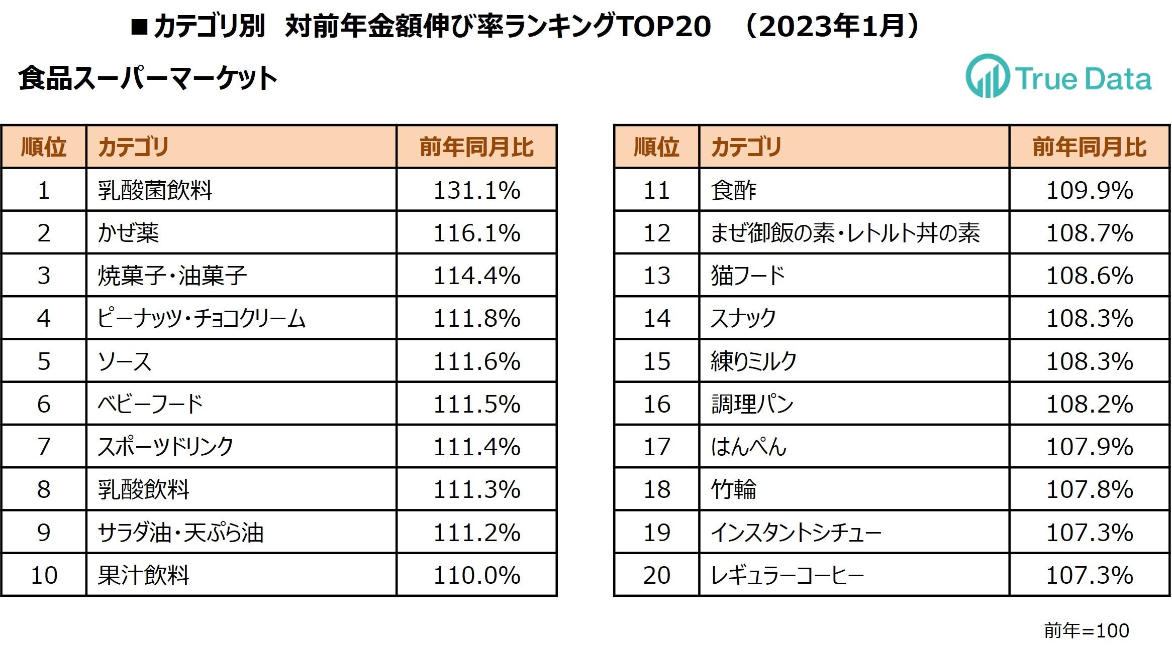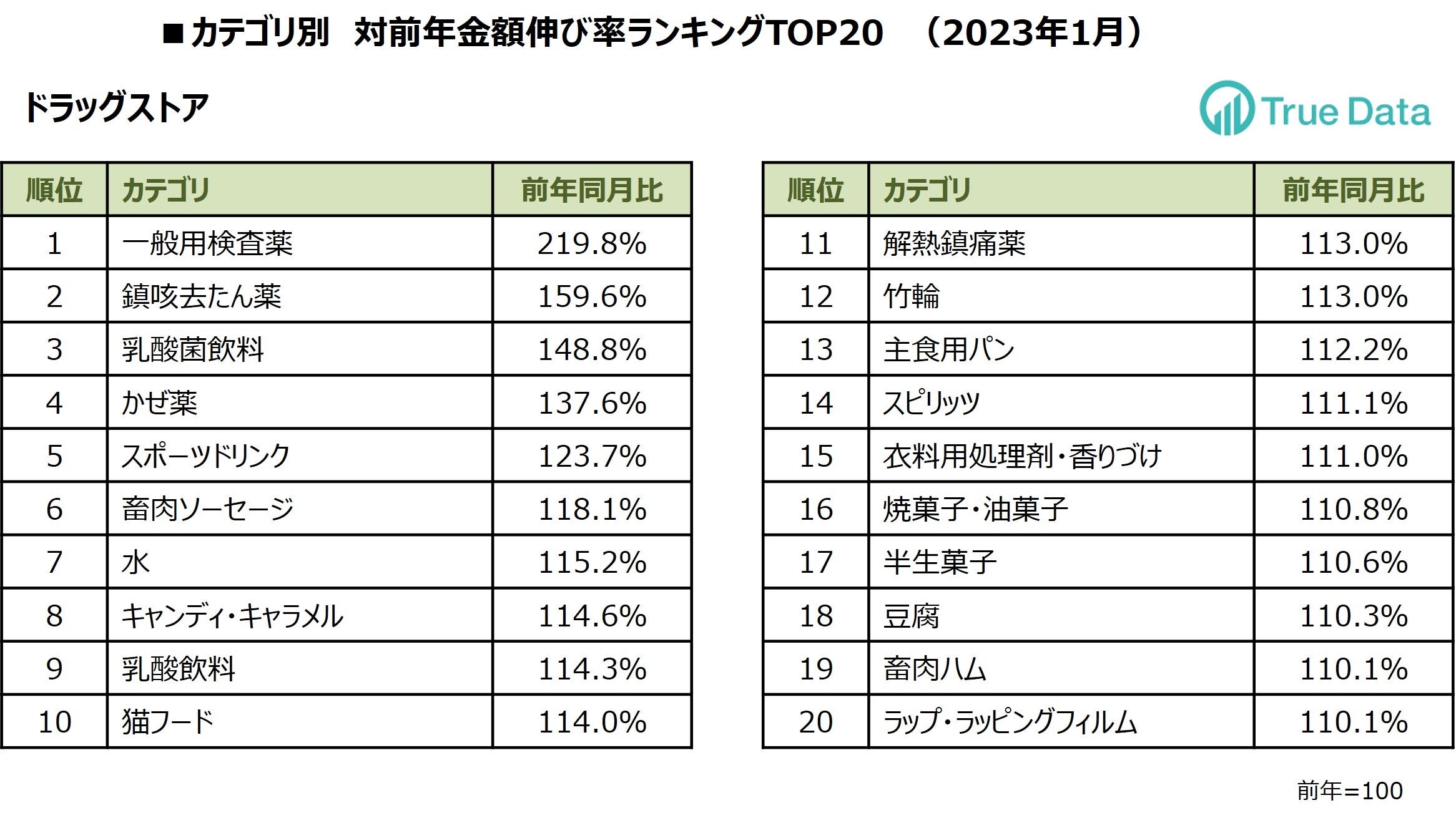 ~ドラッグストア、食品スーパーマーケット 2023年1月の対前年伸び率TOP20カテゴリを発表 ~