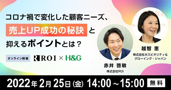 国内最大級の顧客満足度向上プラットフォーム「ファンくる」を運営する株式会ROI(本社:東京都千代田区、代表取締役社長:山口敬人)は、株式会社ホスピタリティ&グローイング・ジャパン(本社:東京都新宿区、代表取締役社長:野中知明)と飲食店応援セミナー「コロナ禍で変化した顧客ニーズ、売上UP成功の秘訣と抑えるポイントとは?」(定員:8 0名/無料)を2月25日(金)に共催いたします。(申し込み先:https://biz.fancrew.jp/seminar_contact?=pr1)