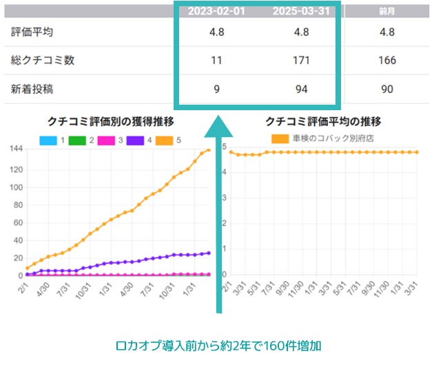 車検のコバック別府店様では、新店舗の立ち上げにあたり、地域での信頼獲得をどのように図るべきか、広告戦略に悩まれていました。特に新規参入という状況の中で、「まずは地元の方々から信頼される店舗になること」が大きな課題だったといいます。そんな折、コバック本部からロカオプの紹介を受け、「今後はMEO対策が重要になる」「クチコミ数の多さが信頼の証になる」といった説明に強く共感されたことが、導入検討のきっかけとなりました。