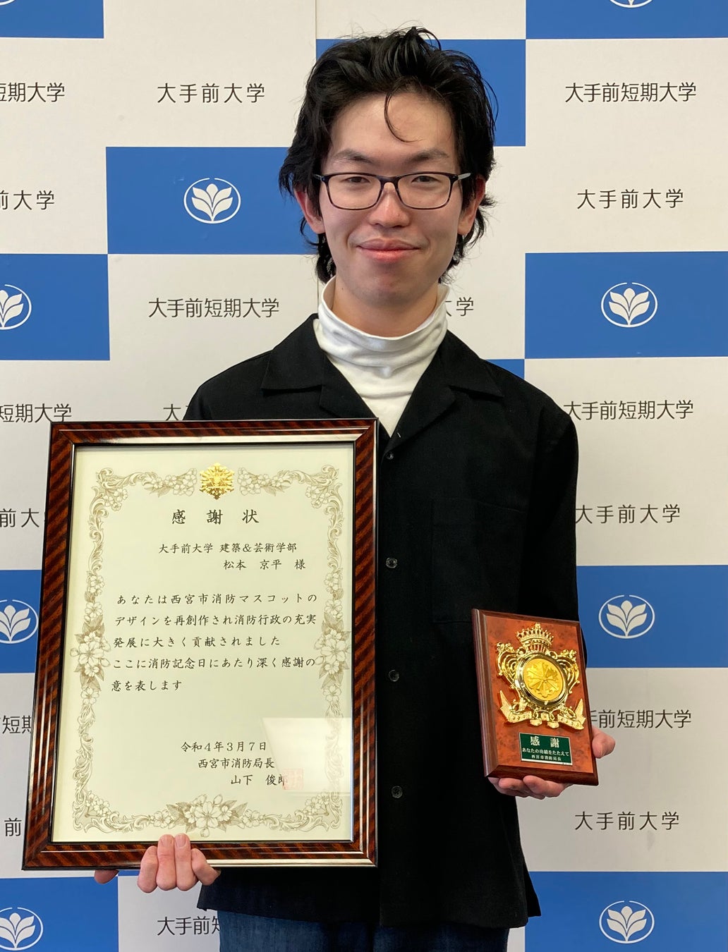 大手前大学 建築&芸術学部 マンガ制作専攻 映像・アニメーション専攻 西宮市消防局より感謝状贈呈
