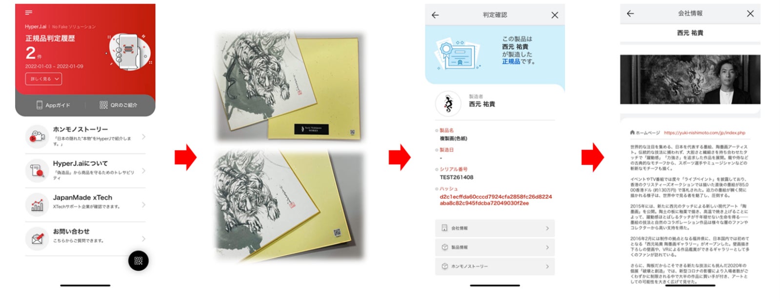 リーガルテックグループJapanMade社、世界初、ブロックチェーン真贋判定システム「HyperJ.ai」HyperJ.aiが導入された西元祐貴氏の作品 2022年1月より販売開始